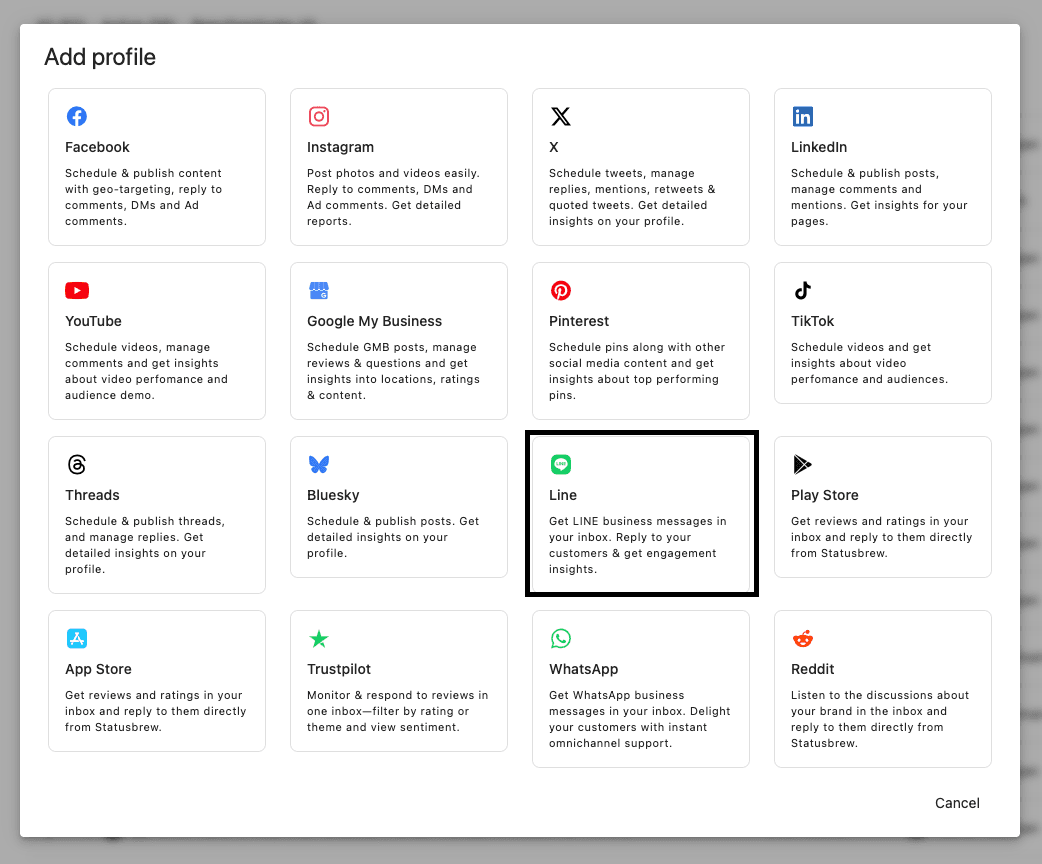 This article will guide you through the steps to connect your LINE account to Statusbrew.