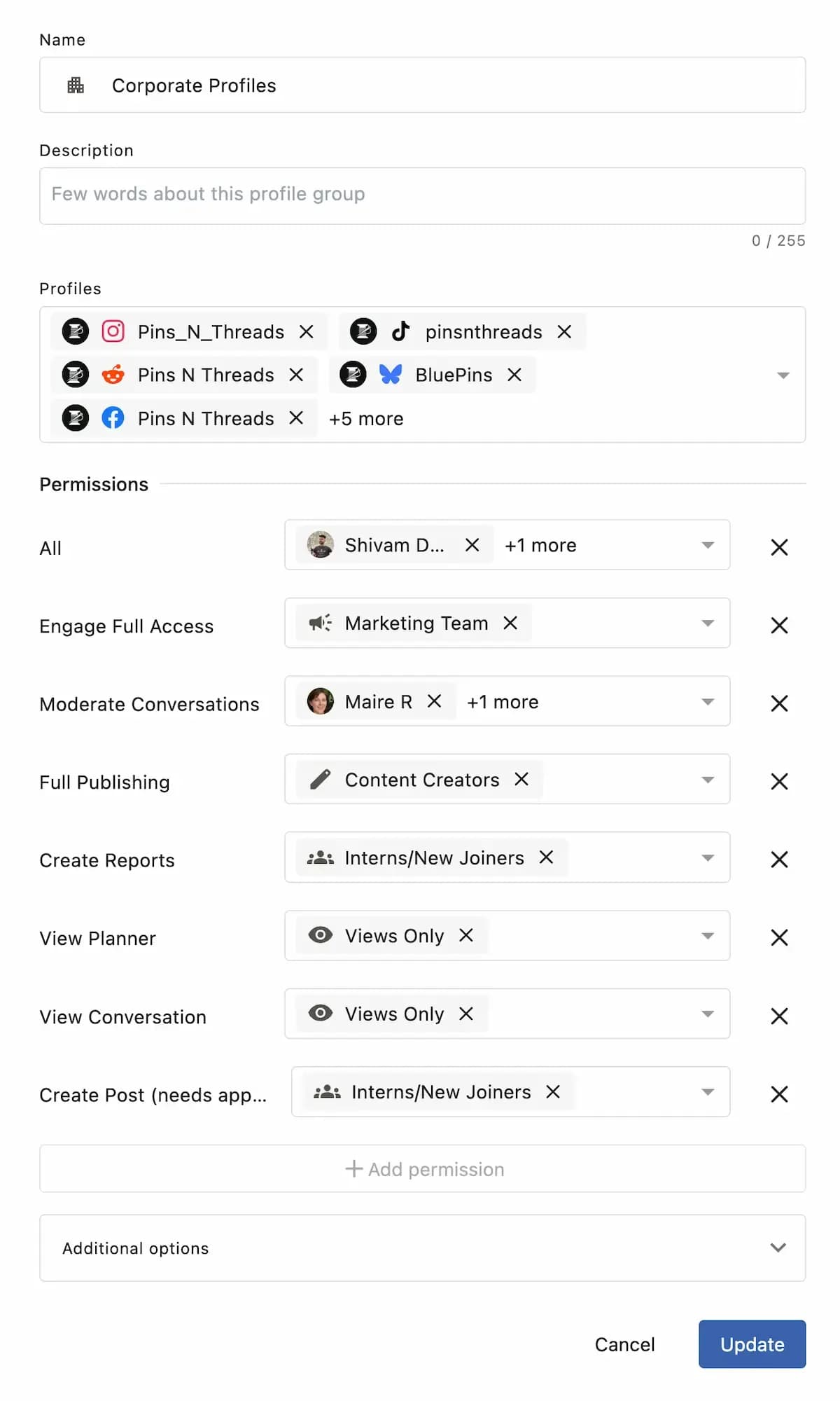 Permissions are essential when you have different people or teams handling specific tasks within your social media operation, all while enabling everyone to collaborate in one shared workspace without unnecessary risk.