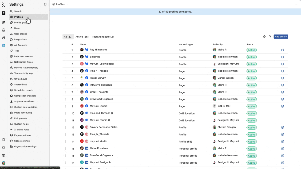 Setting permissions for individual profiles lets you control which users or user groups can access and manage specific social profiles in Statusbrew. Use this option when you want detailed control over who can publish, engage, or create a report for each profile separately.