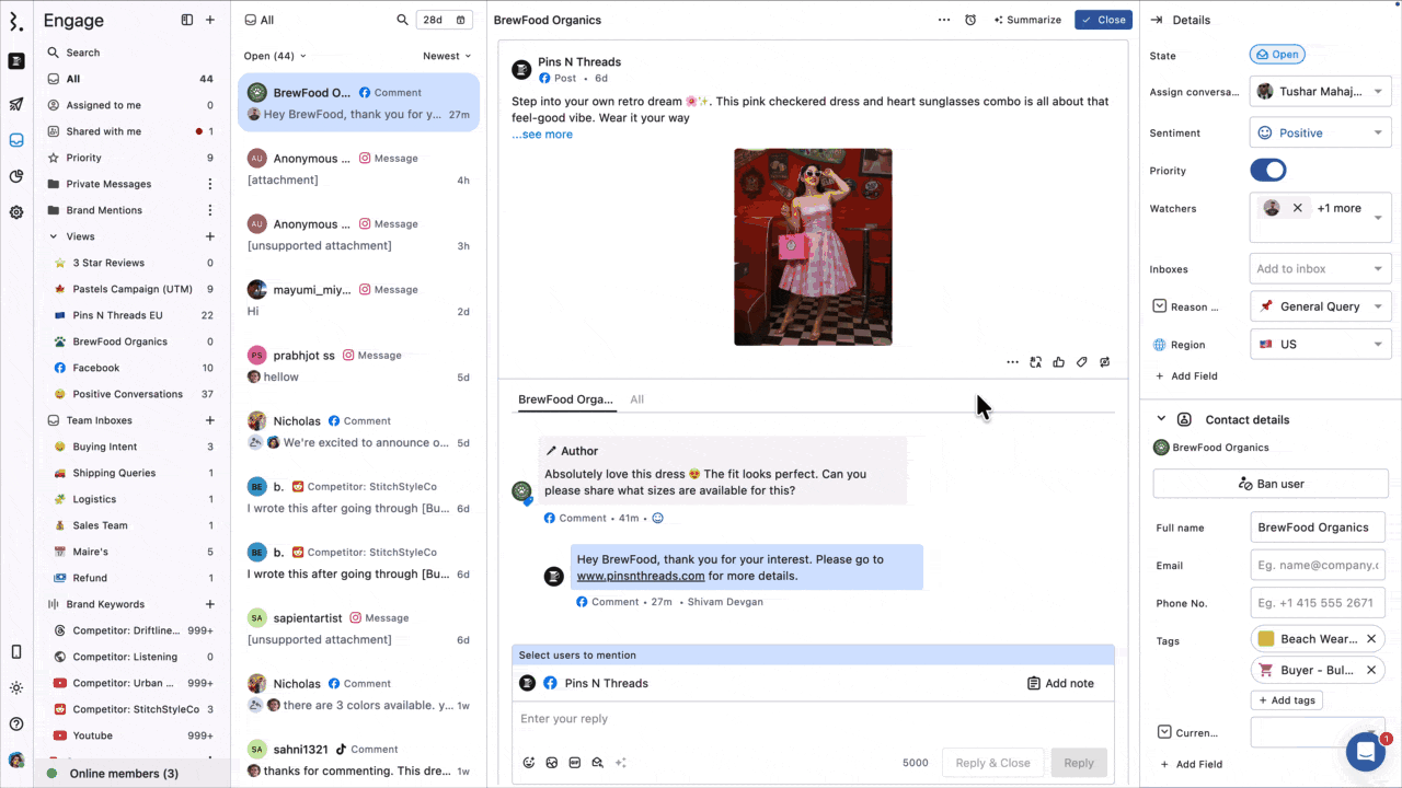 Statusbrew’s Multi-Agent Collision Detection in Engage improves team collaboration. It prevents multiple replies to the same thread by showing an indication of typing to inform team members in real time.