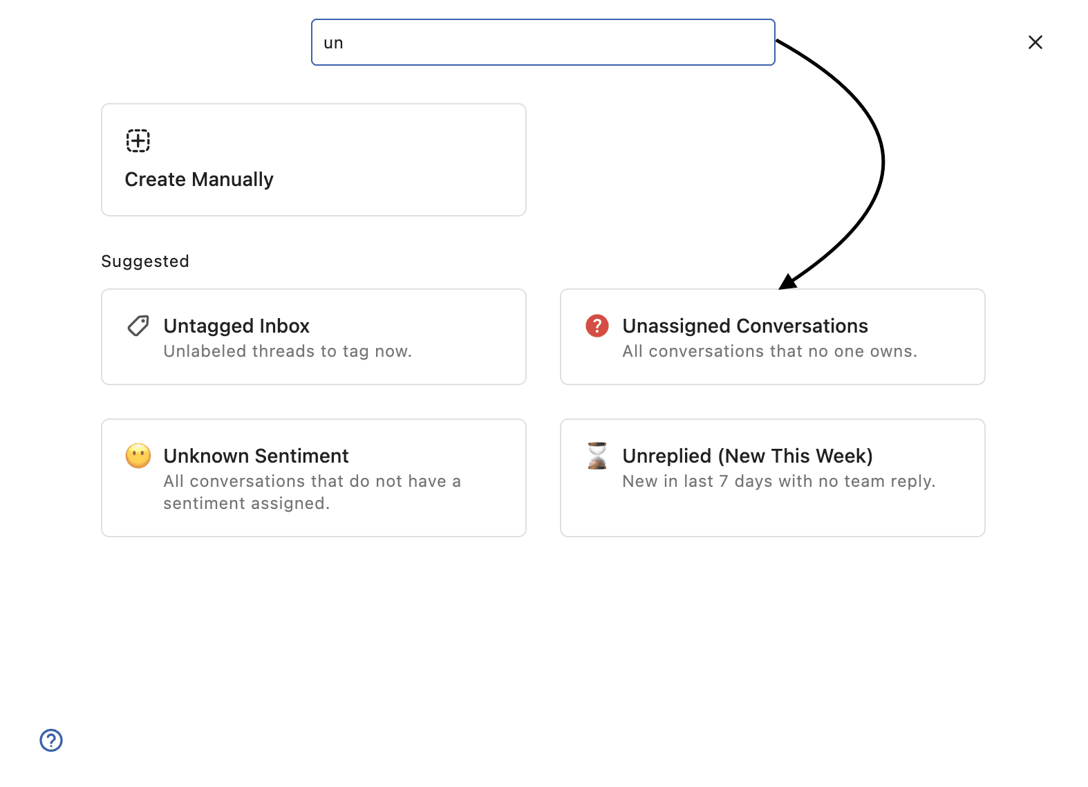 You can create a View to compile all the Unassigned conversations and assign them more conveniently. To create a view for all the Unassigned conversations -