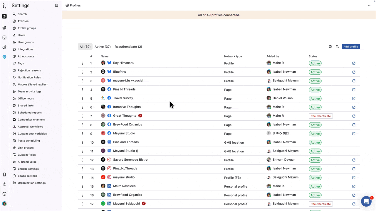 If you want to connect multiple Reddit accounts, click on Add Profile in the Profiles and repeat the same steps. Depending on your pricing plan, your profile limit will vary.