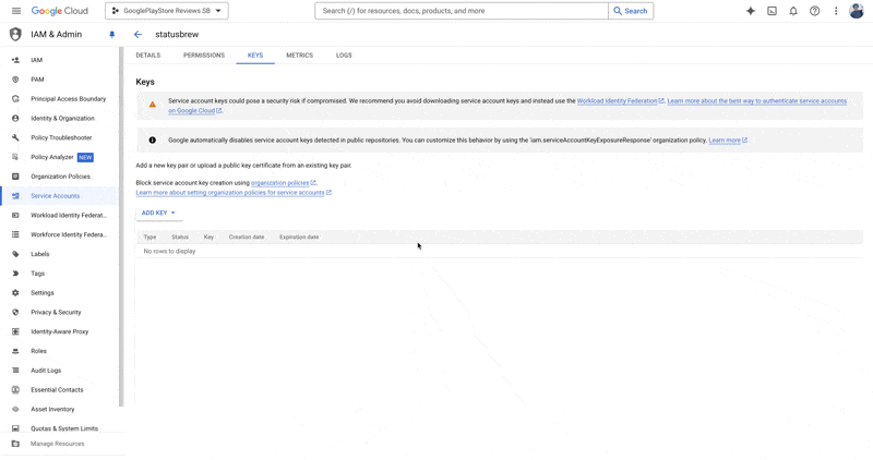 To set up your Google Play Console connection, you’ll need to create a new Project or link an existing one. For detailed guidance on creating and managing Projects, refer to Google’s documentation on the Google Cloud Console.