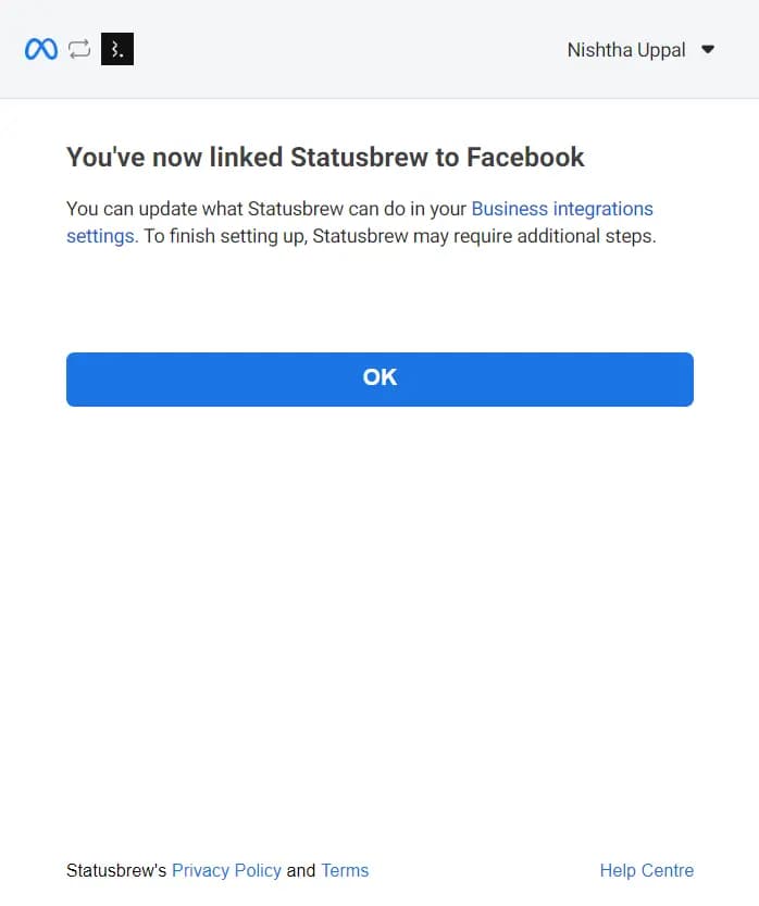 Click OK to return to the Statusbrew platform.