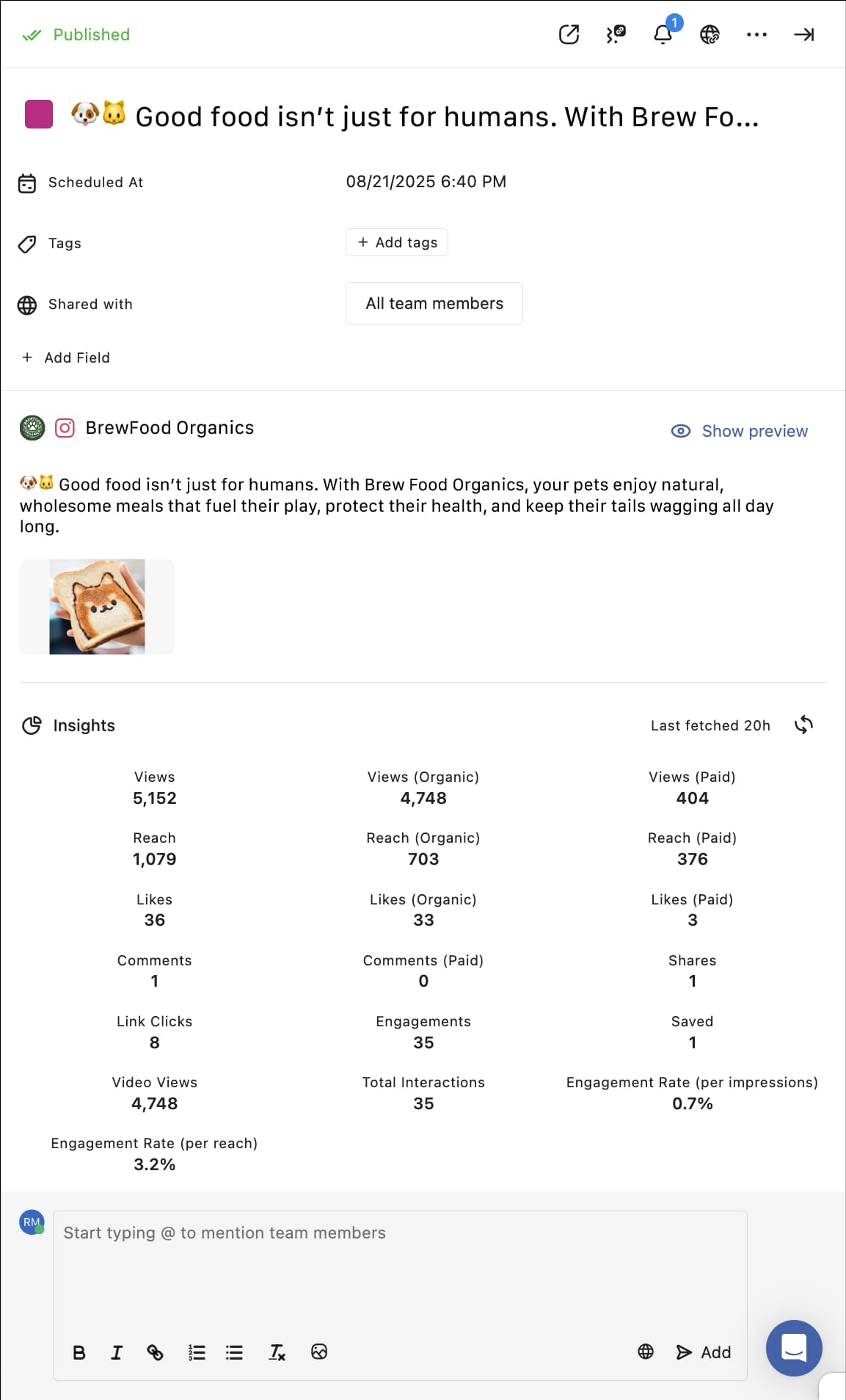 From your Statusbrew dashboard,Select Planner and click on the published post you want to resync.