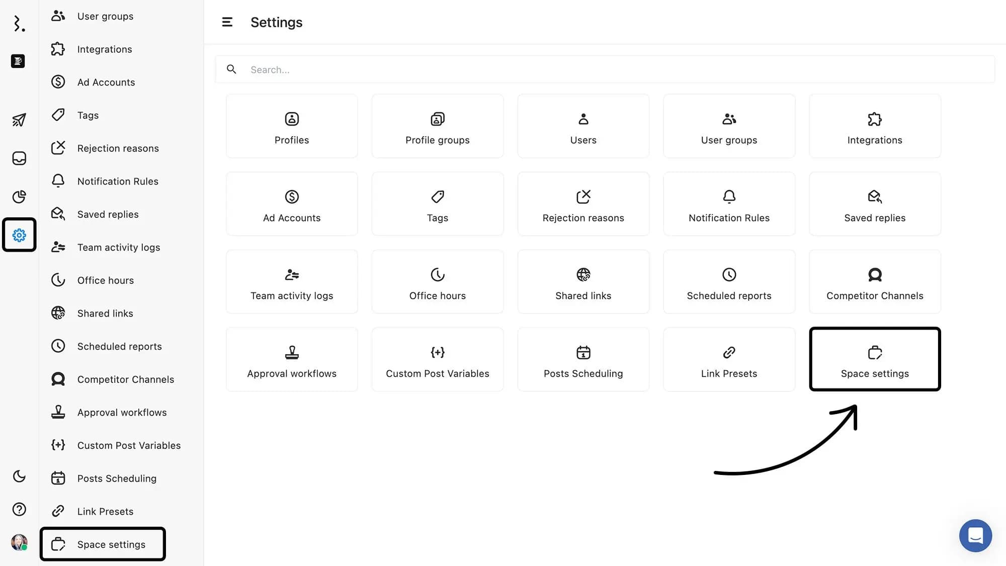 Go to Settings and click on Space settings.