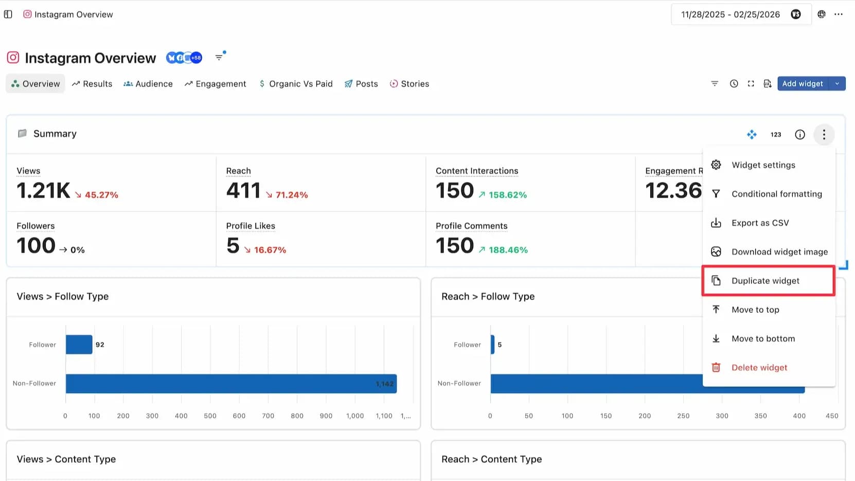 You can duplicate a widget, and then make small changes to filters, dimensions, etc. to create a similar widget that you can tweak to suit your needs.