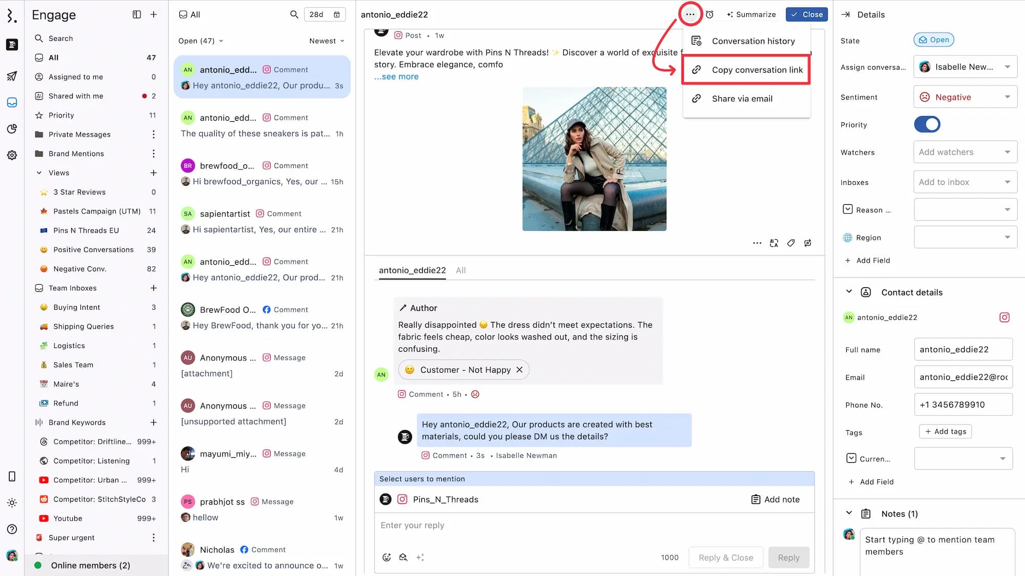 When you share this conversation link with any Statusbrew user, they will be directed to the conversation in Engage.