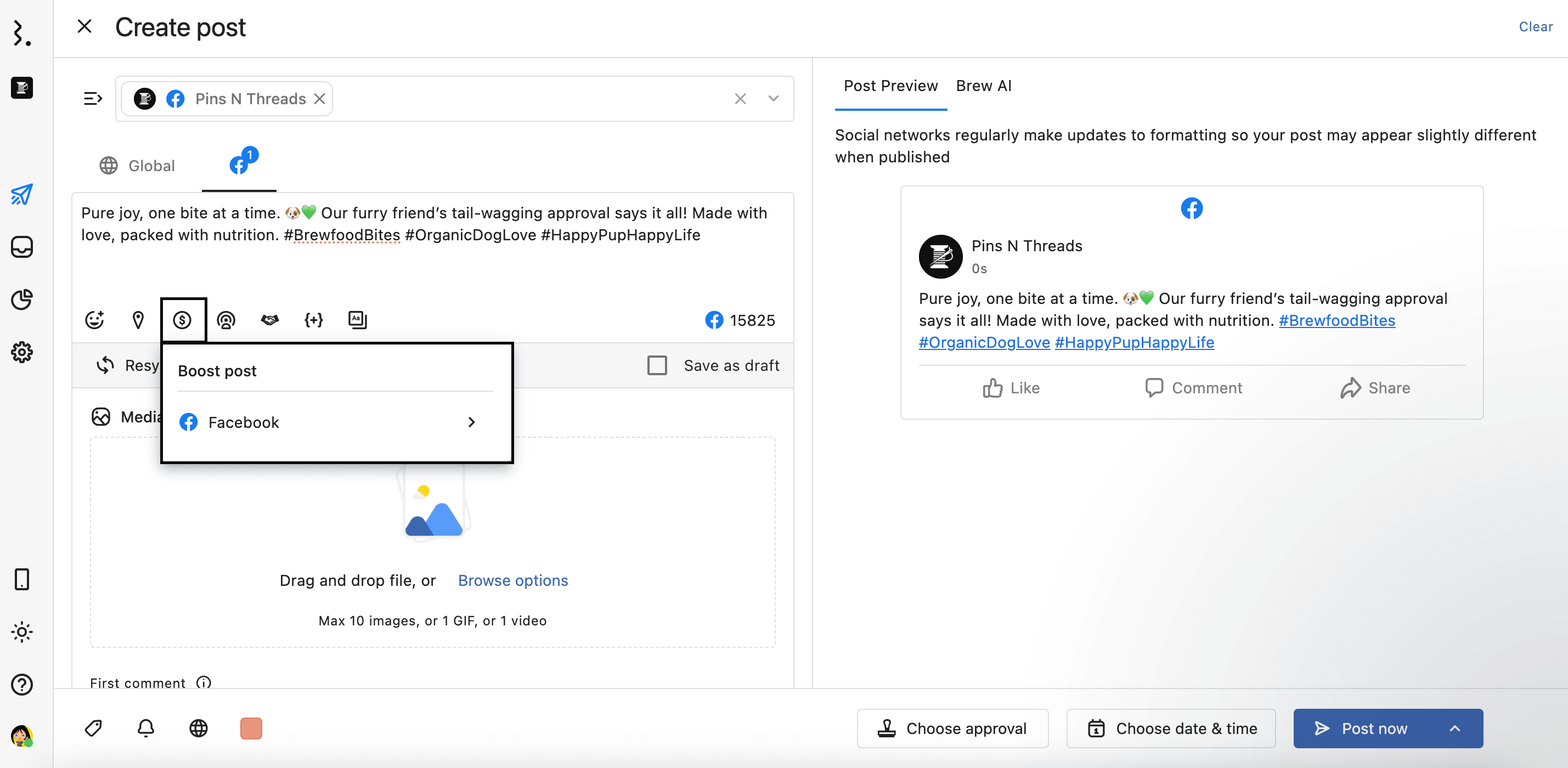 You can boost any Facebook post type in Statusbrew, including drafted, scheduled, or Publish Now posts. You can also boost posts that need approval.