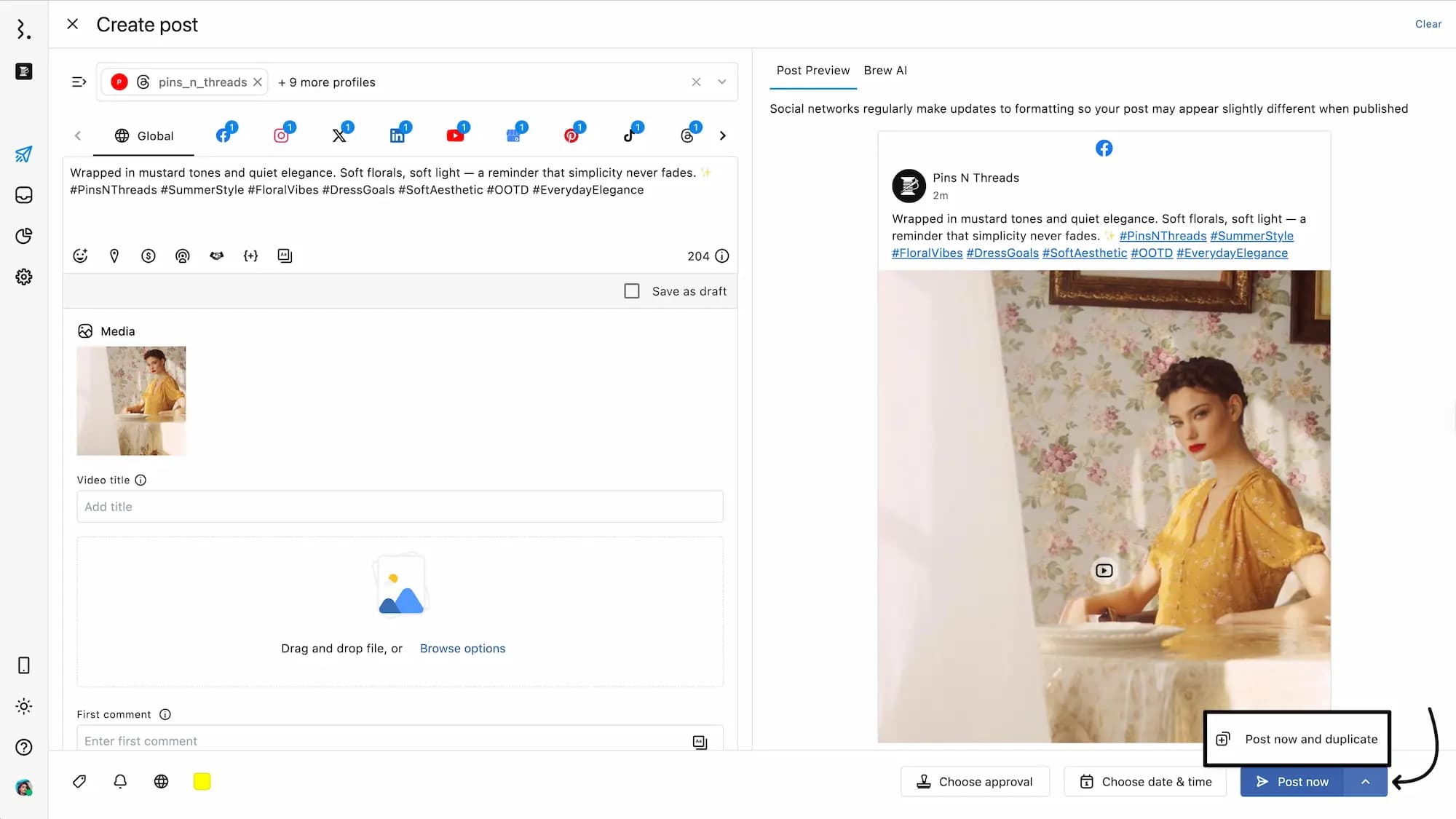 Quickly publish and duplicate posts by clicking the Post now and duplicate. Clicking beside Post now will reveal the Post now and duplicate option.