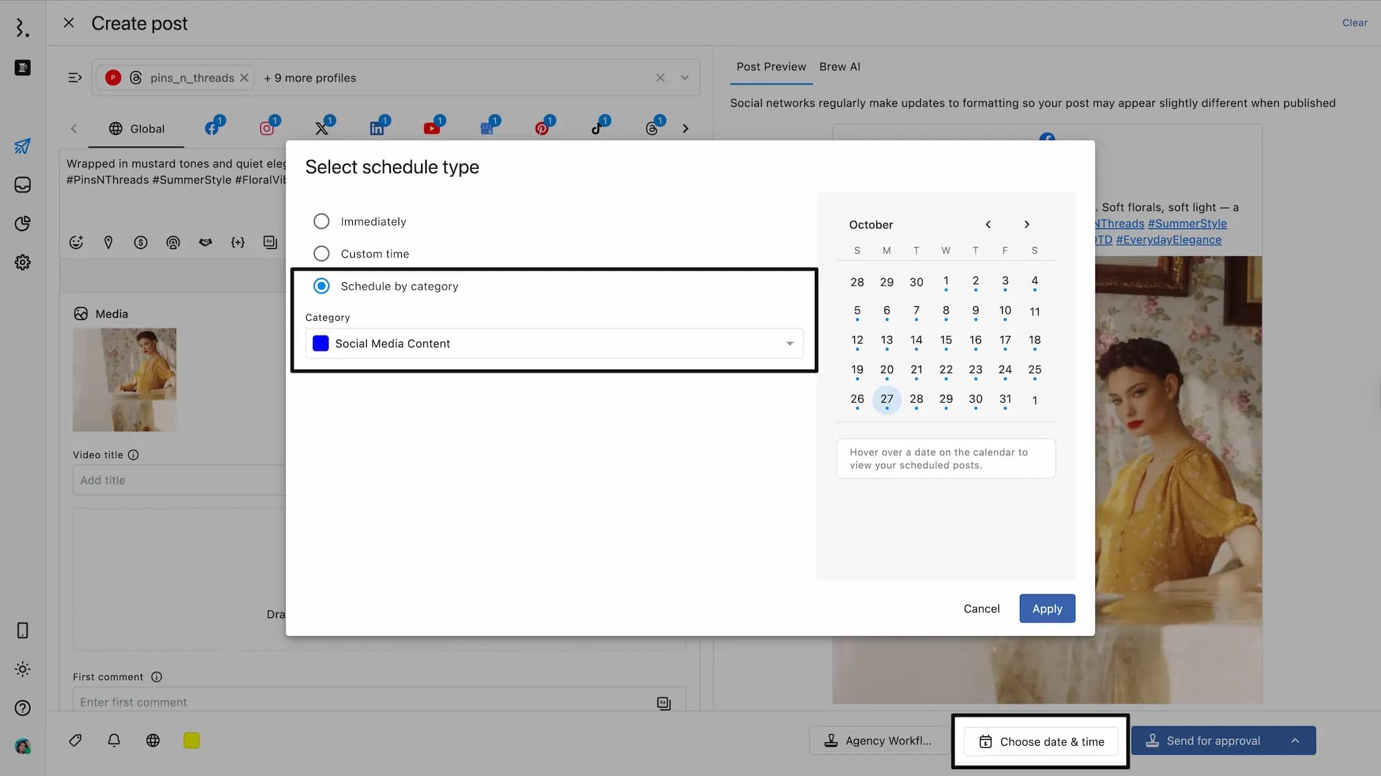 Refer to our article on Approval Workflows to learn how to send a post for approval.