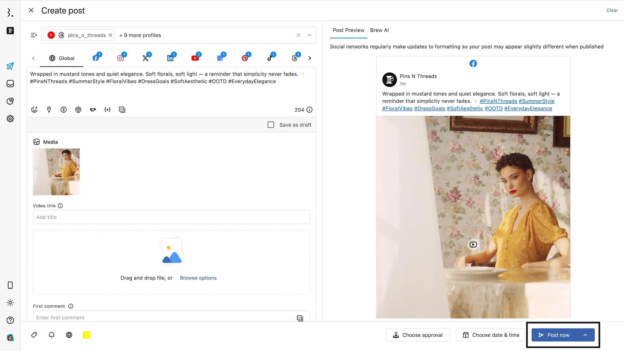 Statusbrew allows you to instantly publish your content with the Post now option. By default, posts are set to post immediately. Use this option for posts related to time-sensitive announcements or spontaneous updates.