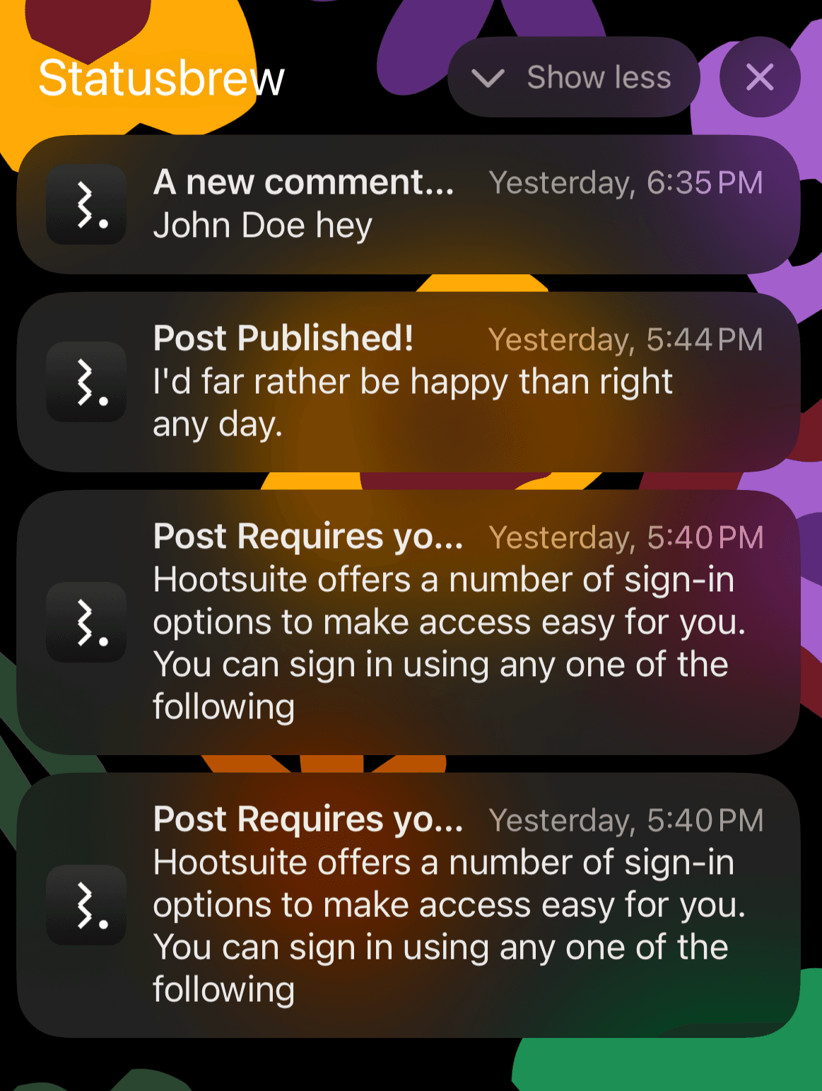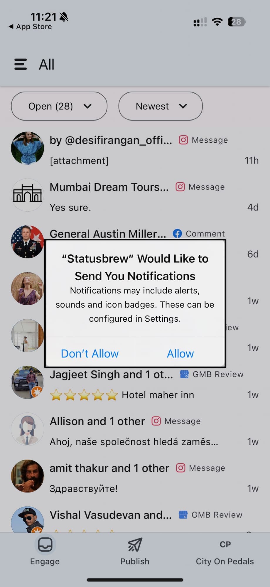 If you have notifications turned on in the Statusbrew mobile app but you aren’t getting them, complete the troubleshooting steps in this article first: Statusbrew Mobile App Troubleshooting