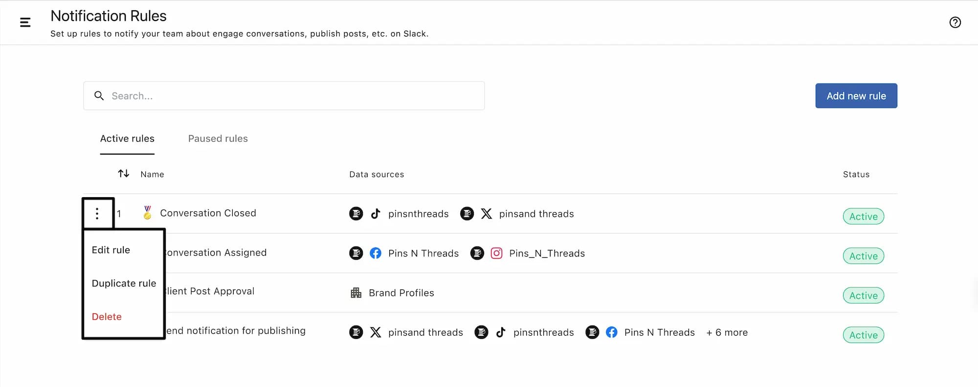This notification rule will ensure that whenever a post is published on any of your brand’s social profiles, they will be notified.
