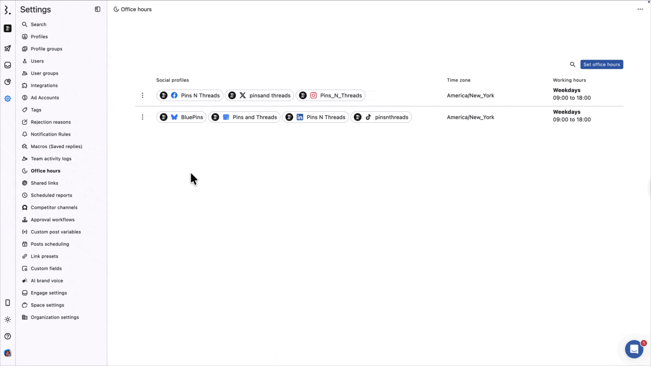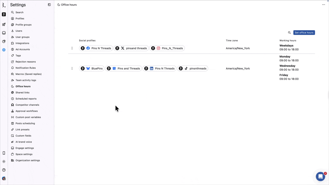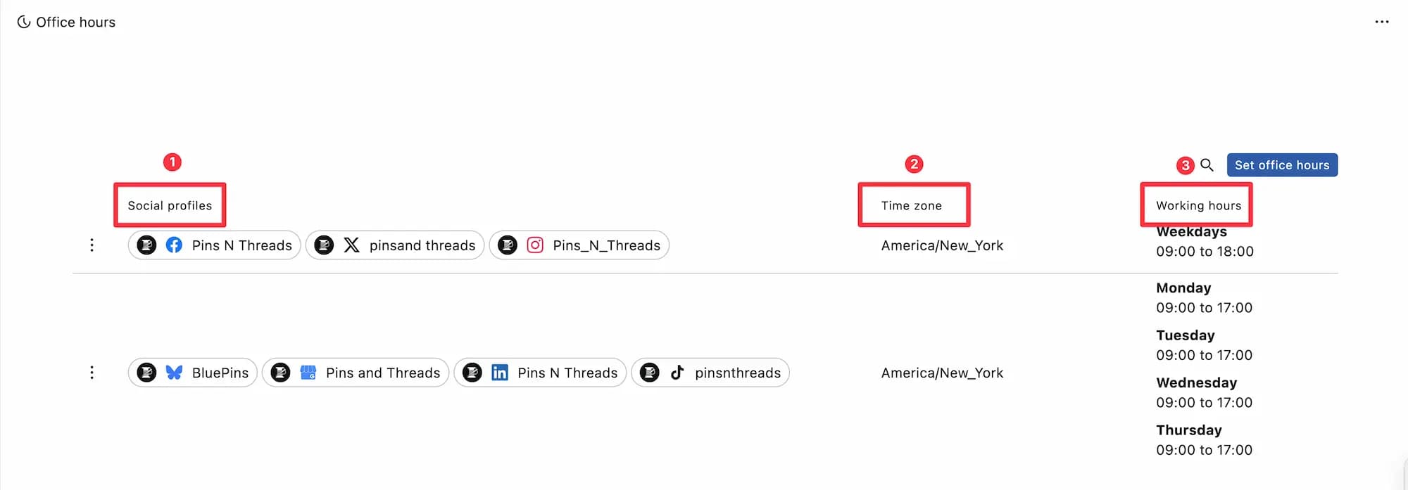 Social profiles: Displays the list of profiles for which the office hour is created.