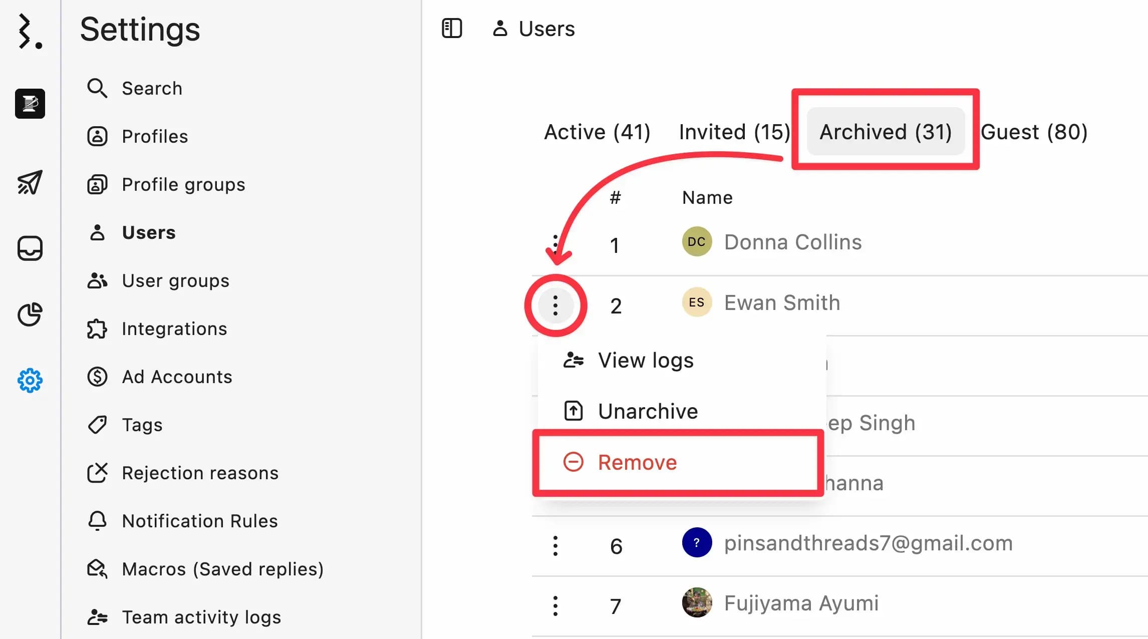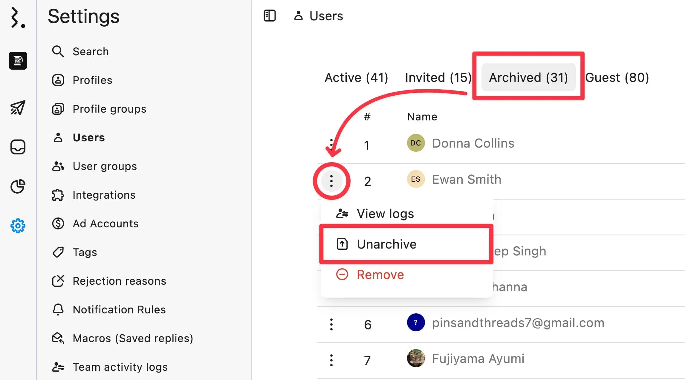 Click the Archived Users tab