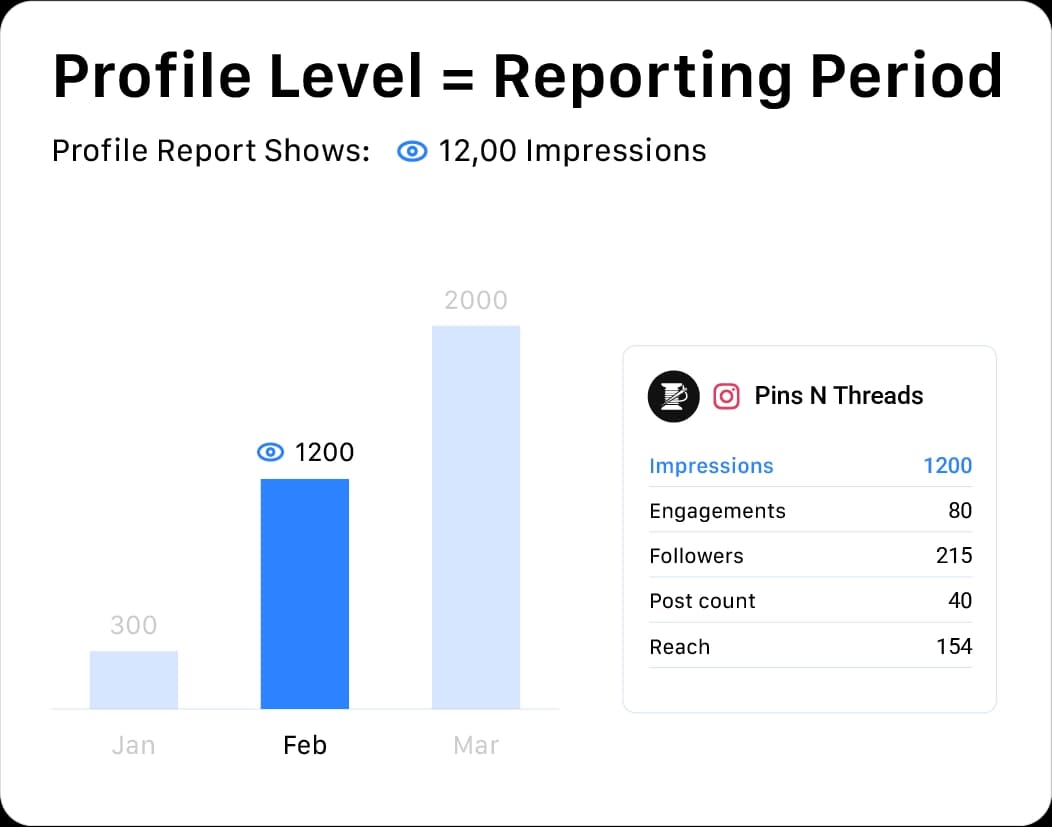 refers to metrics aggregated at the profile level during a specific reporting period, such as total impressions or reach.