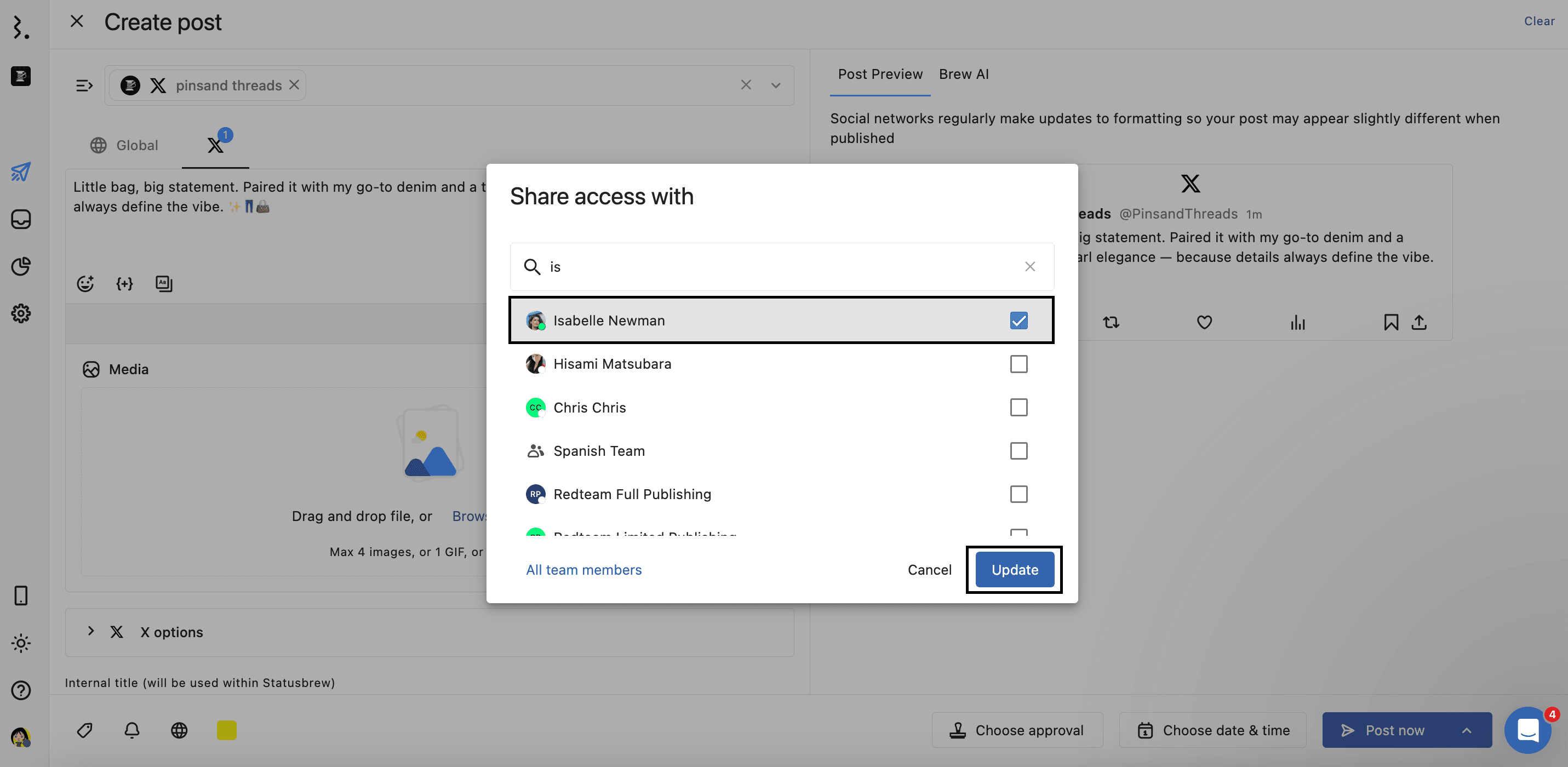 This guide walks you through how to restrict post access so that only the right team members can view or edit posts within your Statusbrew Space.