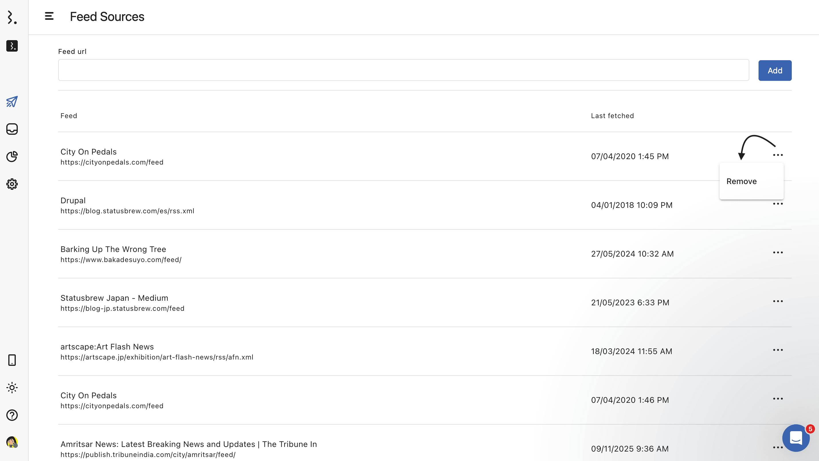 Click next to the feed you want to delete and select Remove.
