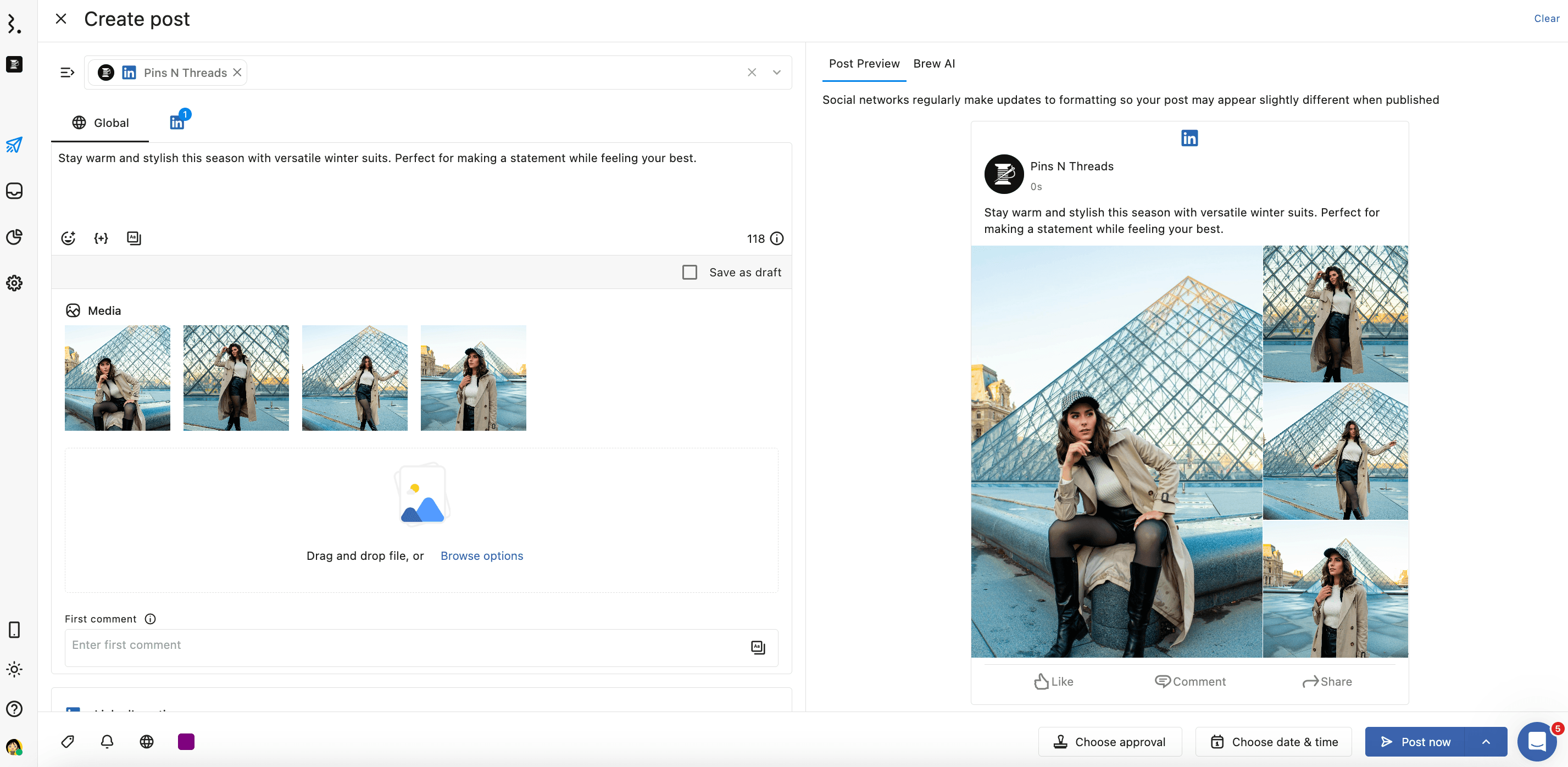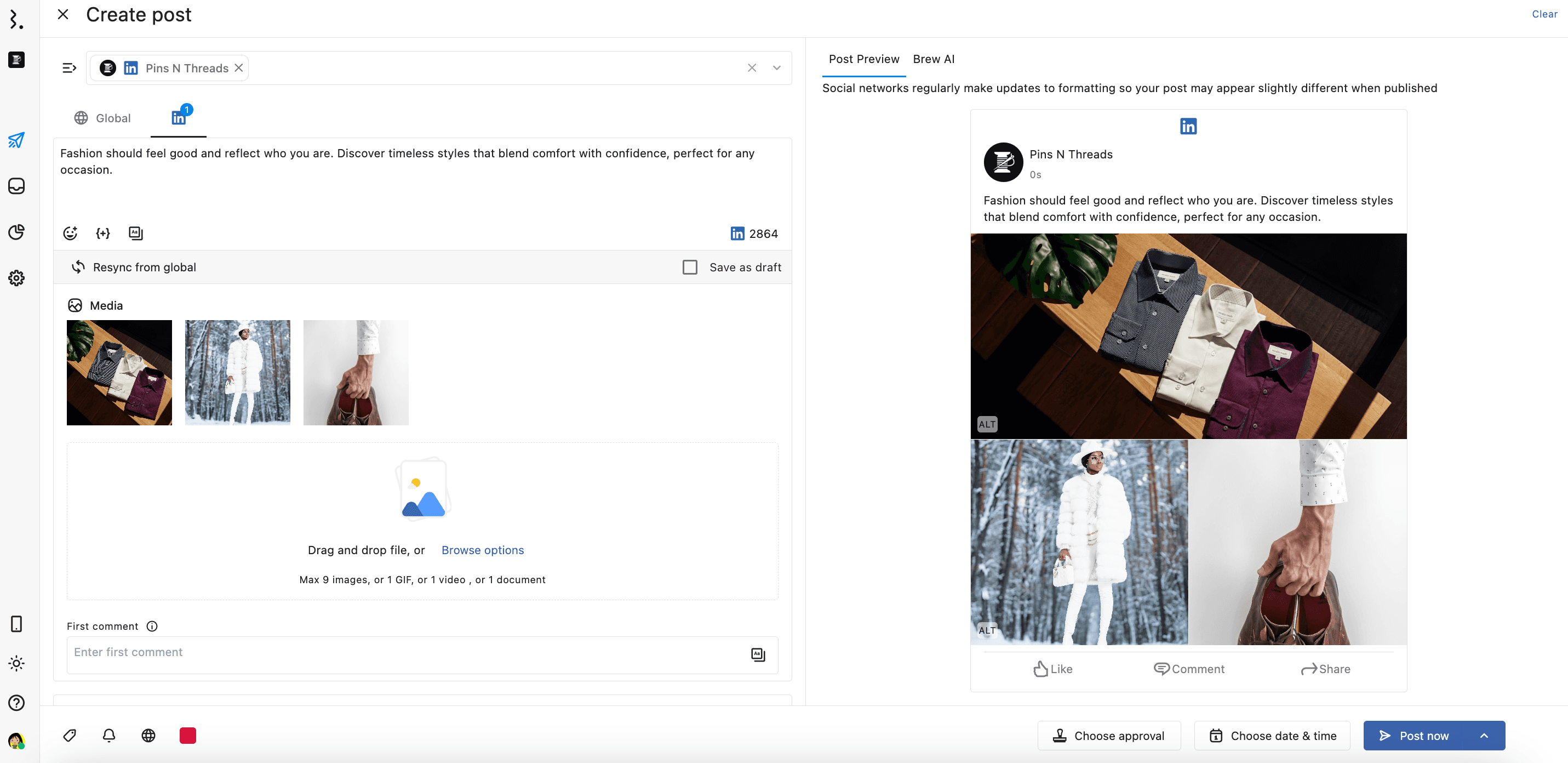 You can publish and schedule LinkedIn text posts, images, video posts, and document posts in Statusbrew.