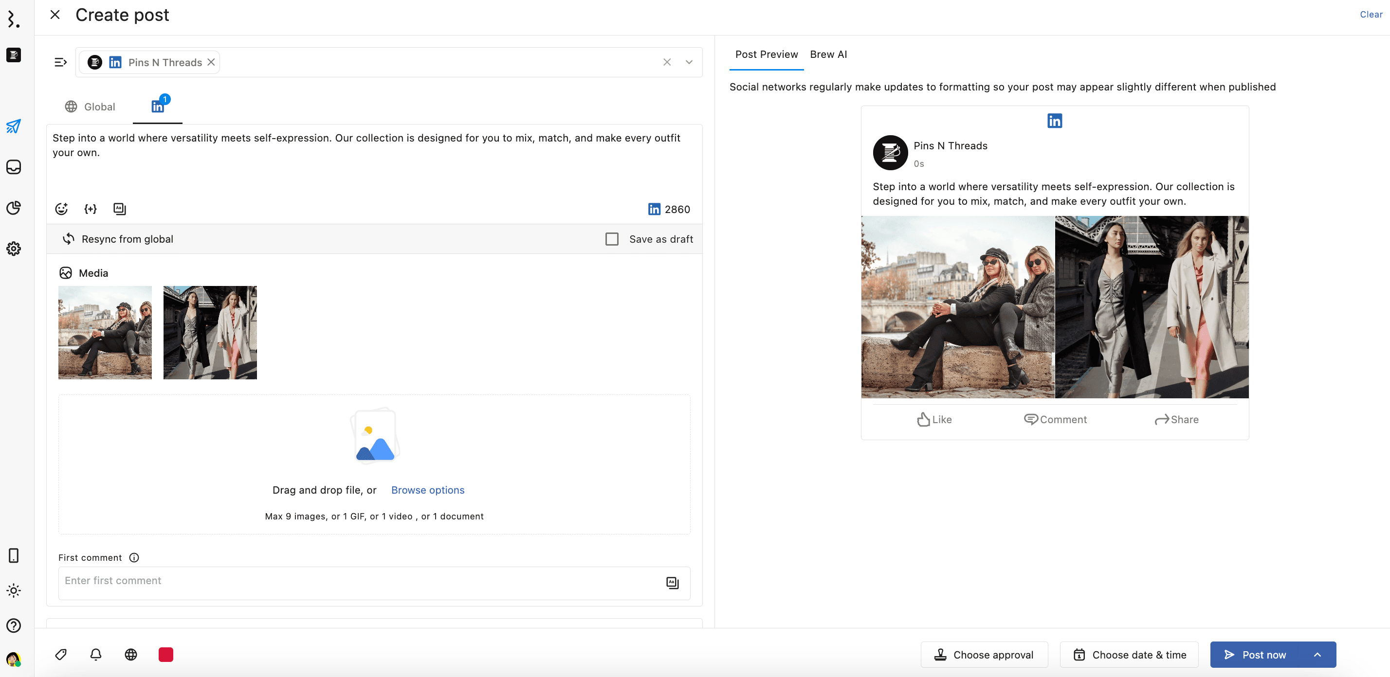 Create and publish content to LinkedIn Profiles and Pages. Save time by posting to multiple LinkedIn accounts or other social networks at once. You can publish immediately or schedule posts for a specific date and time.