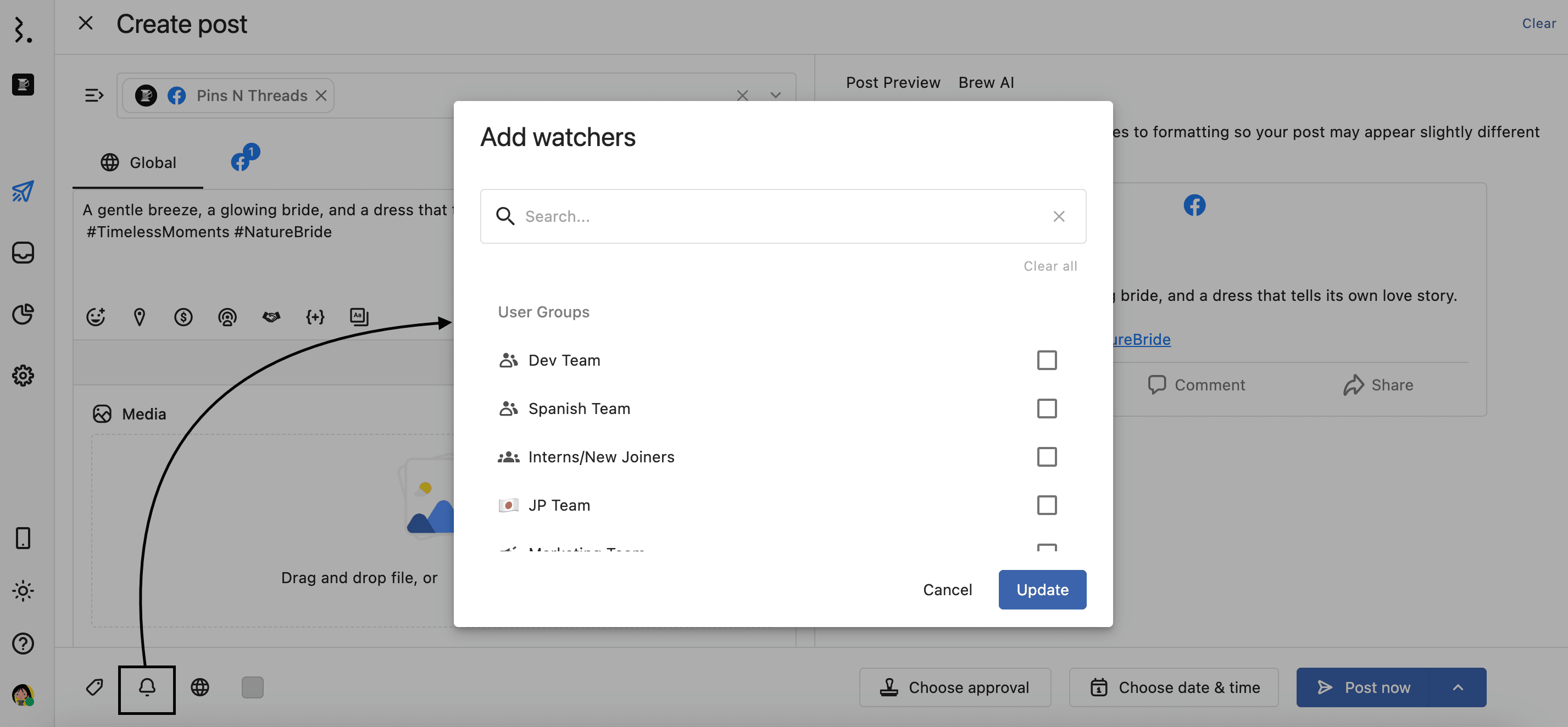 Add team members as watchers to your post so they receive notifications and stay updated about various content publishing activities on the post.