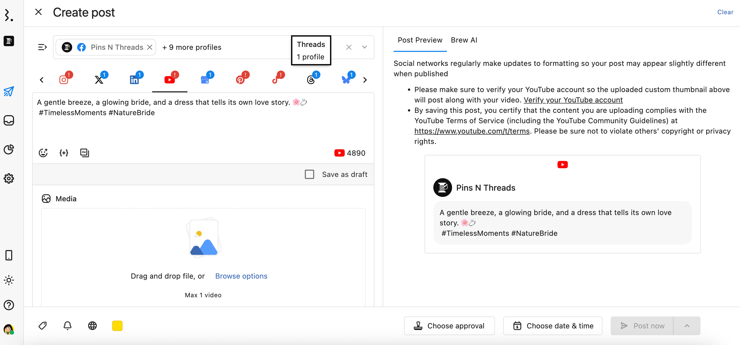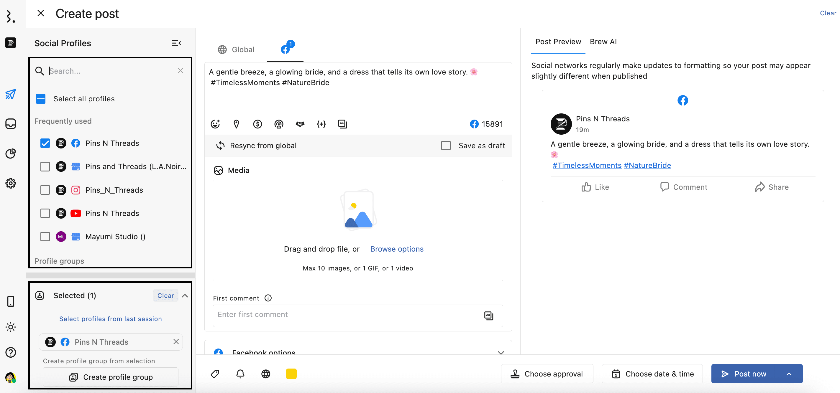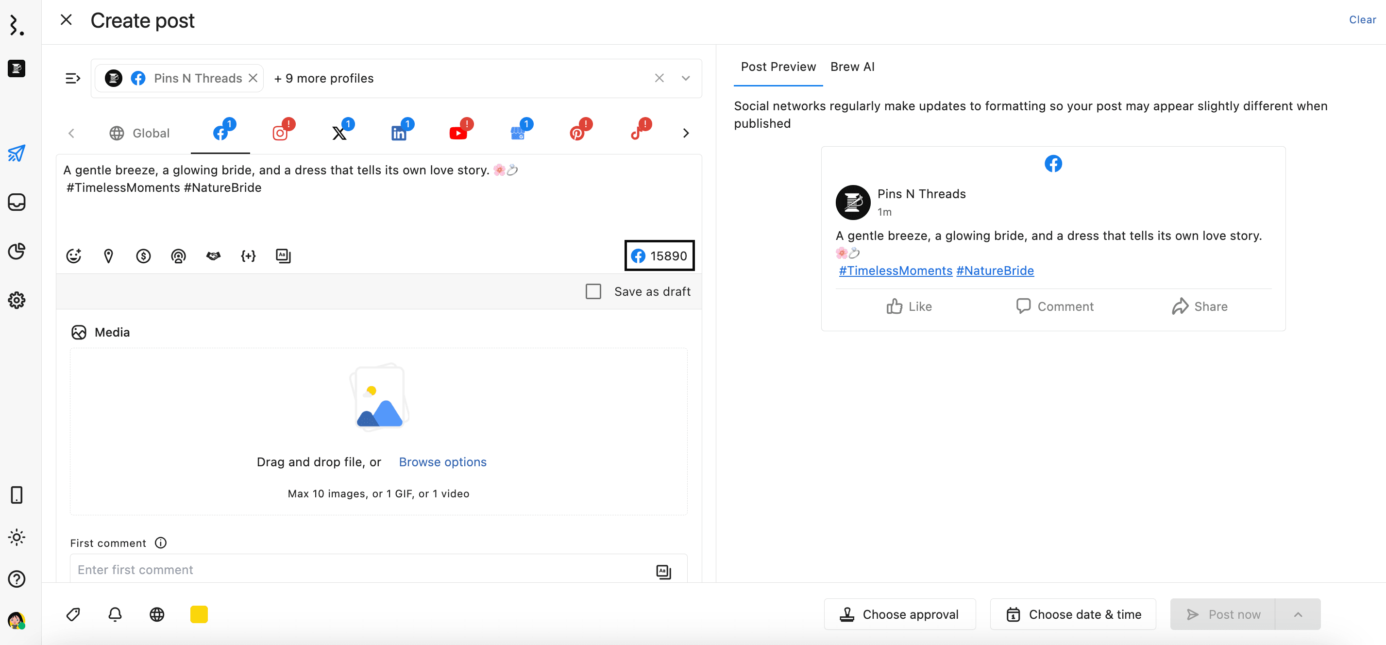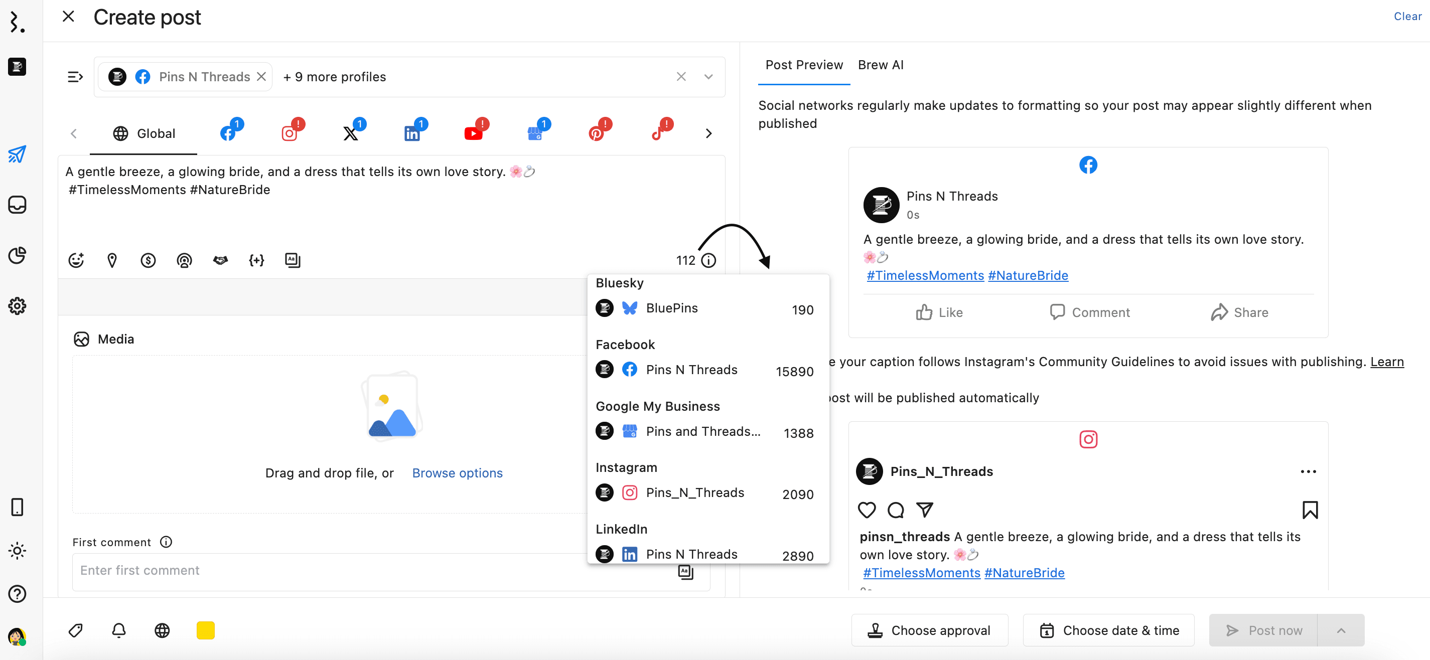 As you build your post, you’ll see a preview of how it will appear on every selected network, ensuring it looks perfect before publishing.