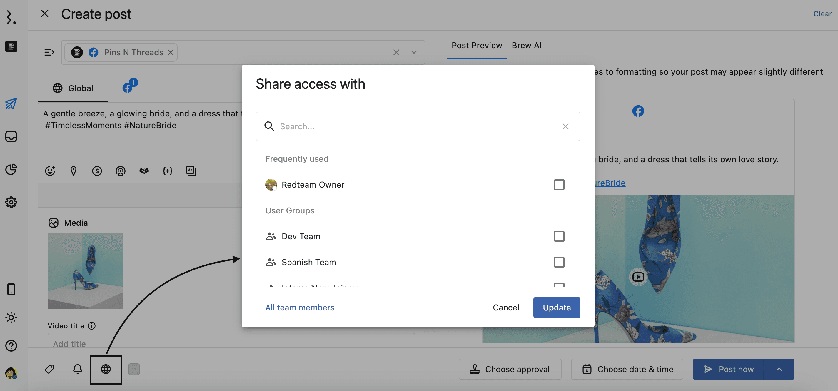 Choose the user(s)/user group(s) to share posts with and limit their visibility to specific team members to prevent unauthorized access.