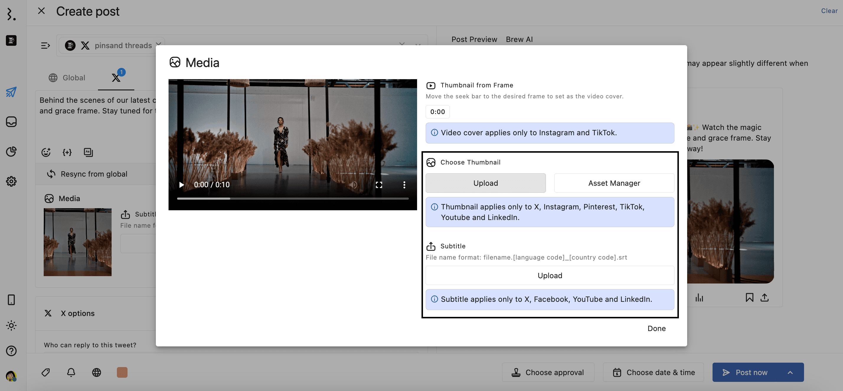 You can now enhance videos for your connected X profiles by adding thumbnails and subtitle files when publishing or scheduling.