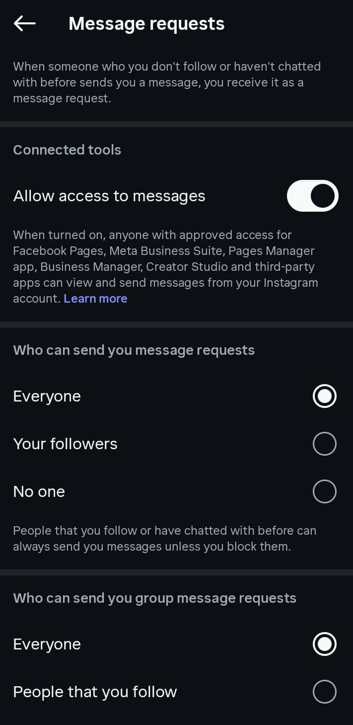 Tap Message requests in How people can reach you