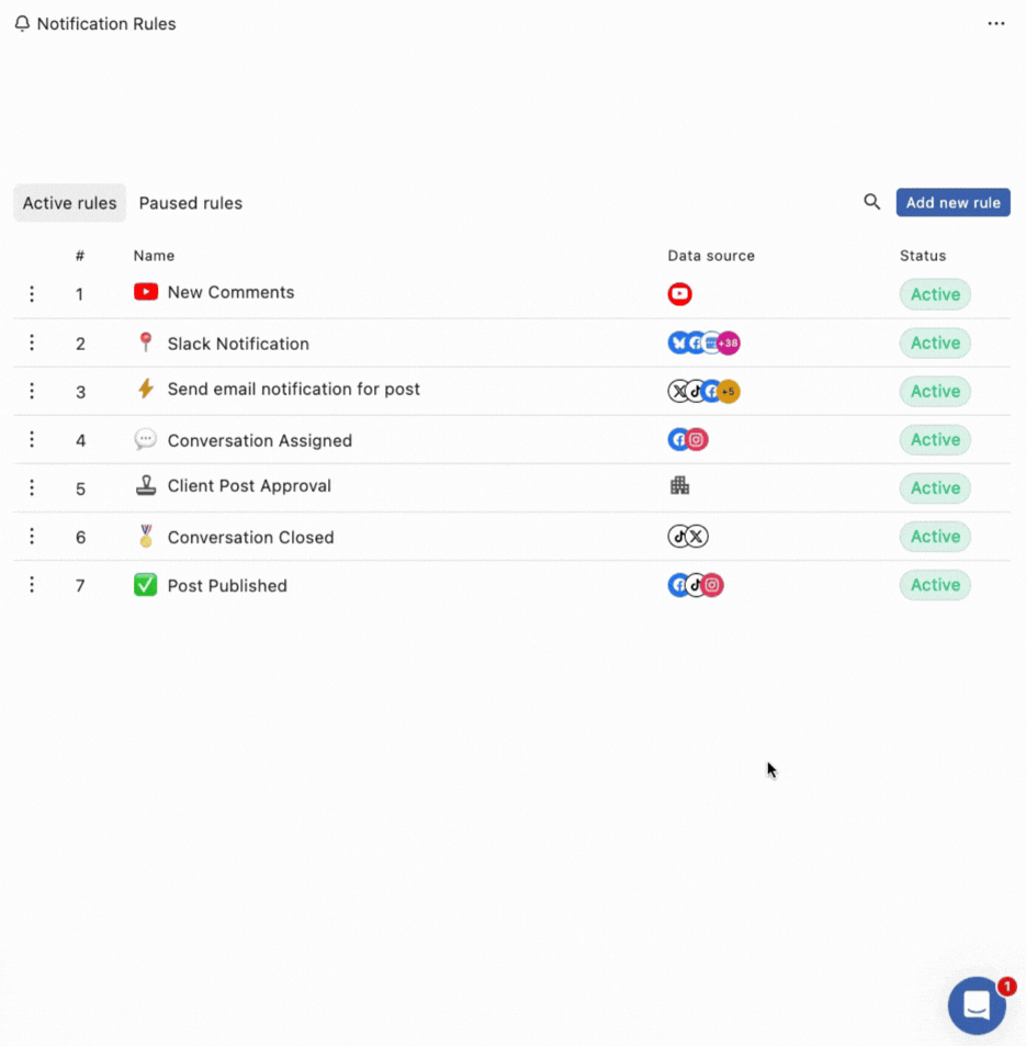 You can create multiple rules to send different alerts to different Slack channels. For example, send publishing failures to your content team's channel and new engagement activity to your community team's channel.