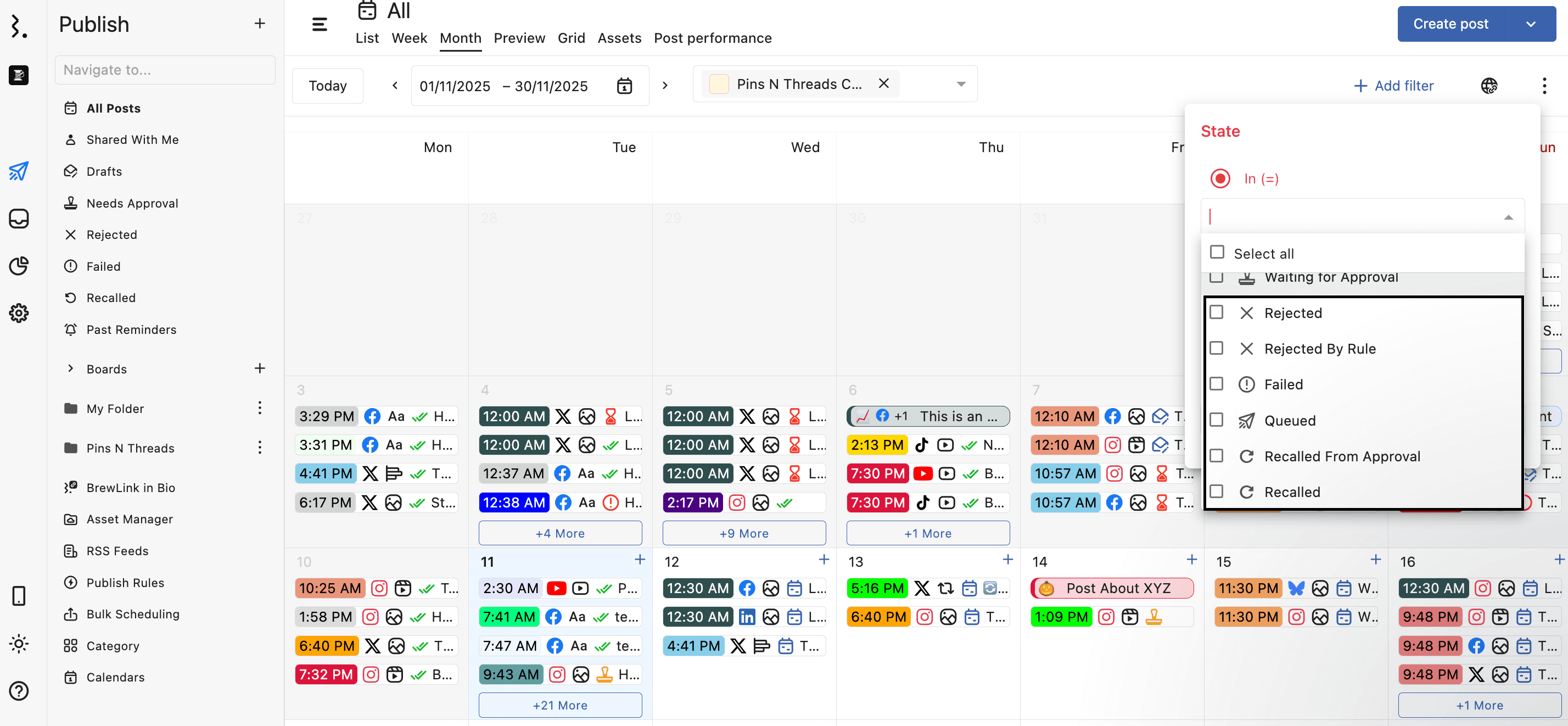 When managing your content calendar in Statusbrew, posts can exist in different states. Each state gives you a clear picture of where the post stands in the publishing process.