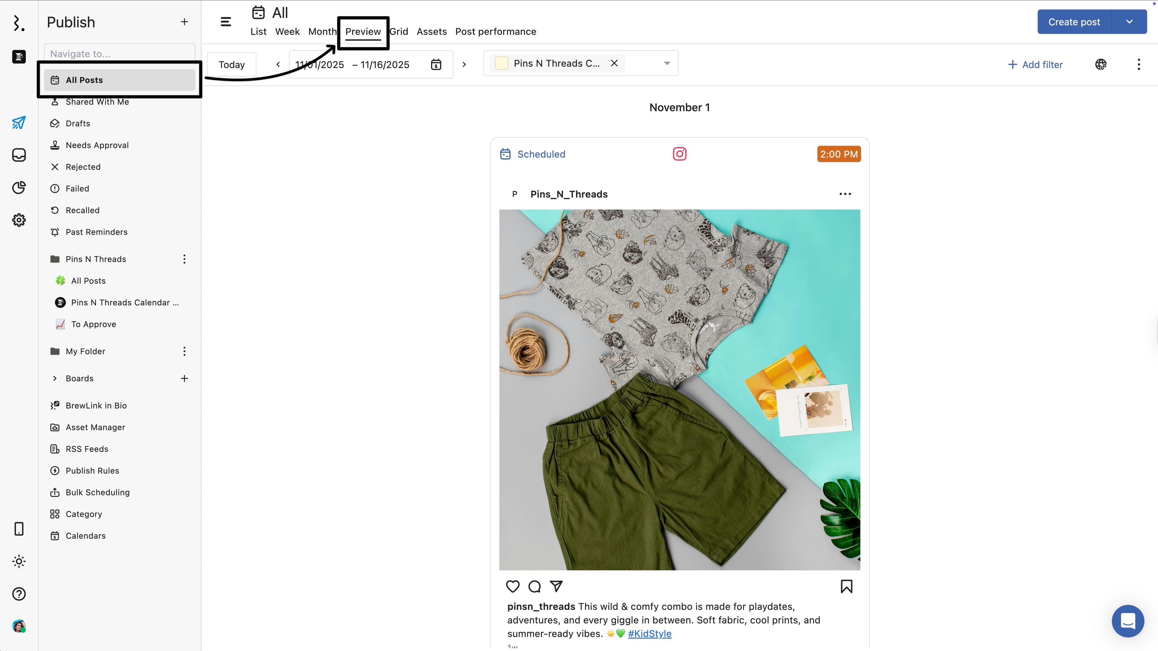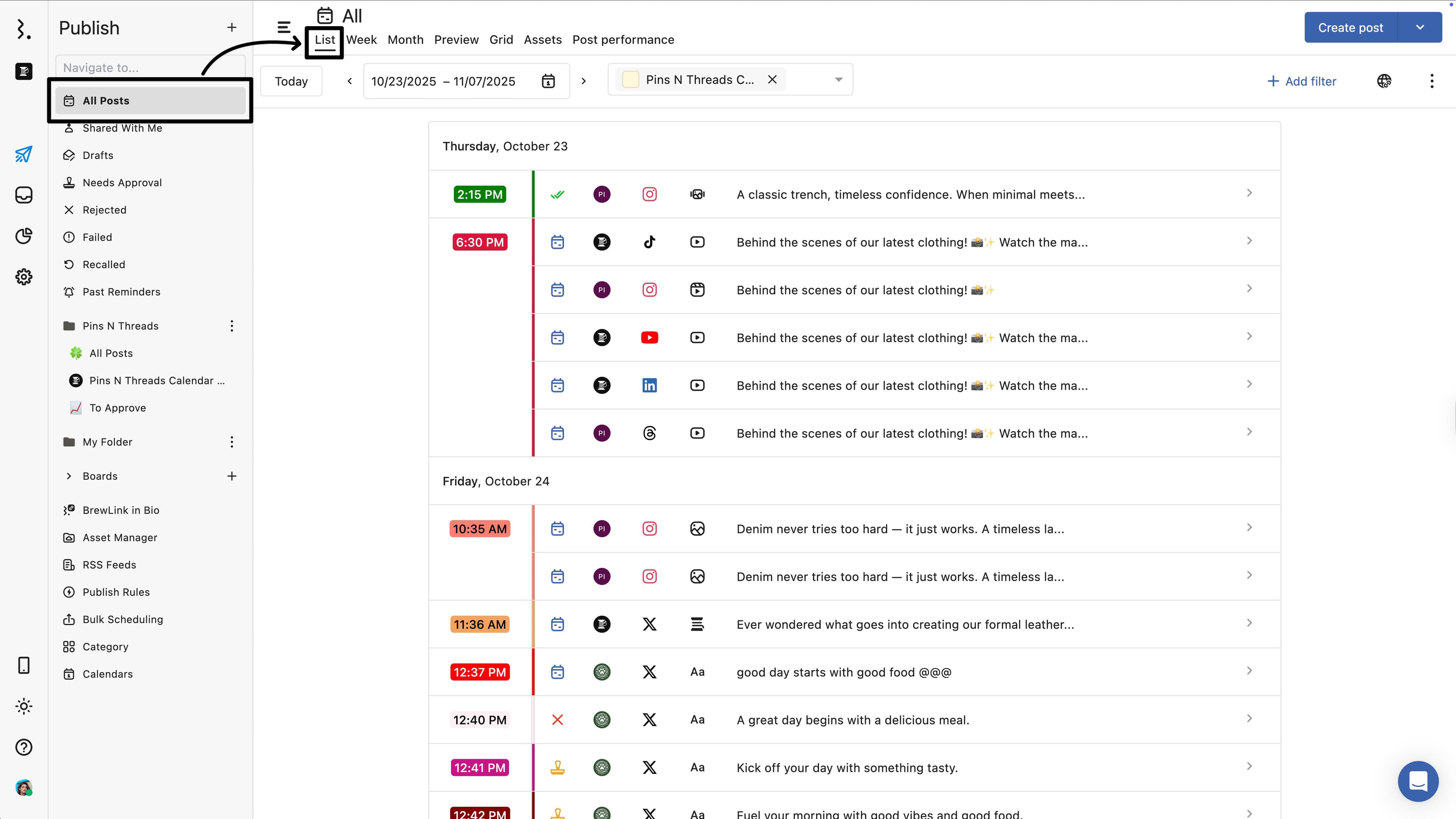 Once created, these posts will appear in your Planner, where you can easily manage and track them.