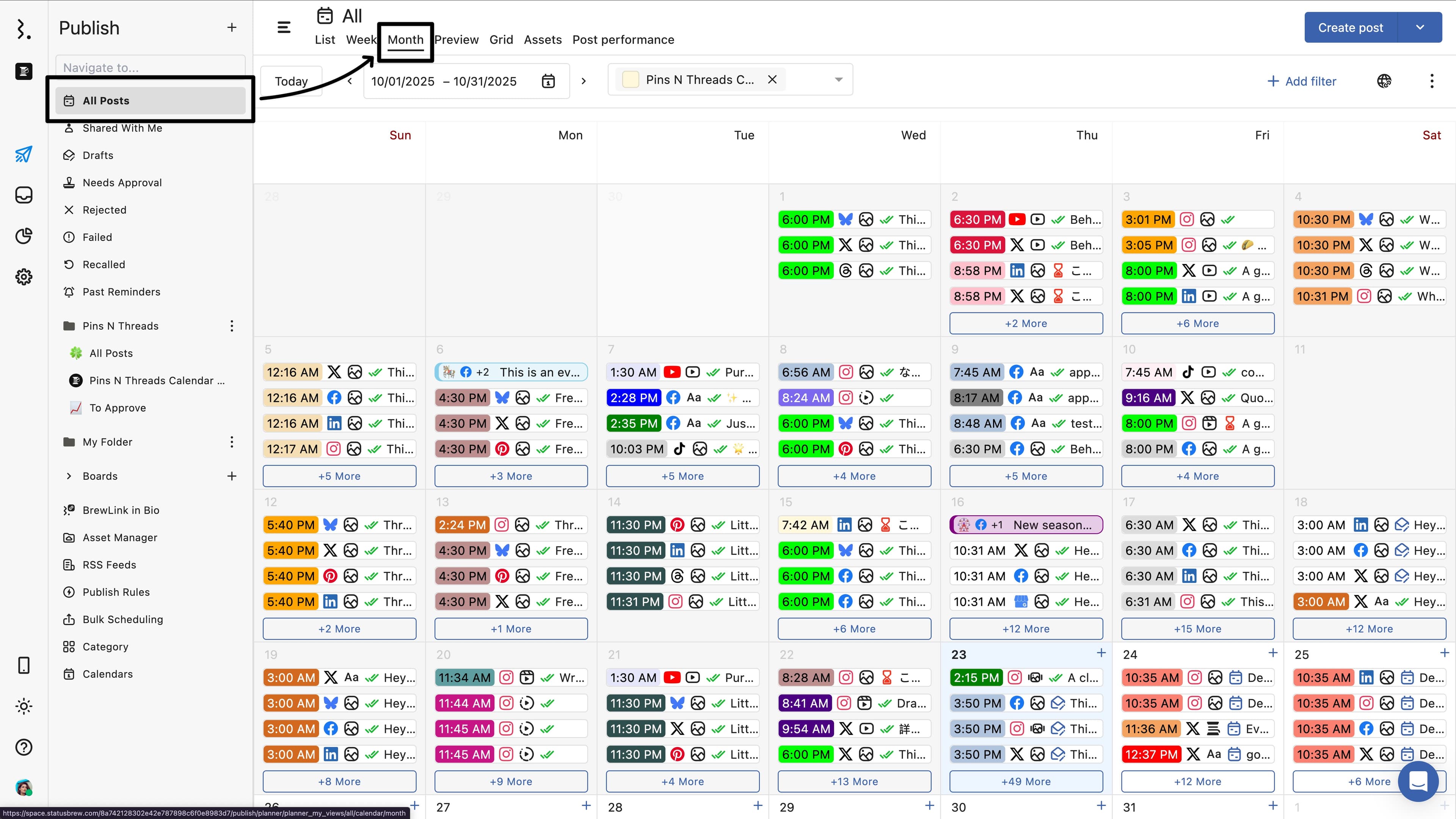View and manage your content calendar in Statusbrew with Planner. Planner provides one place to visualize and manage social posts across all connected profiles.