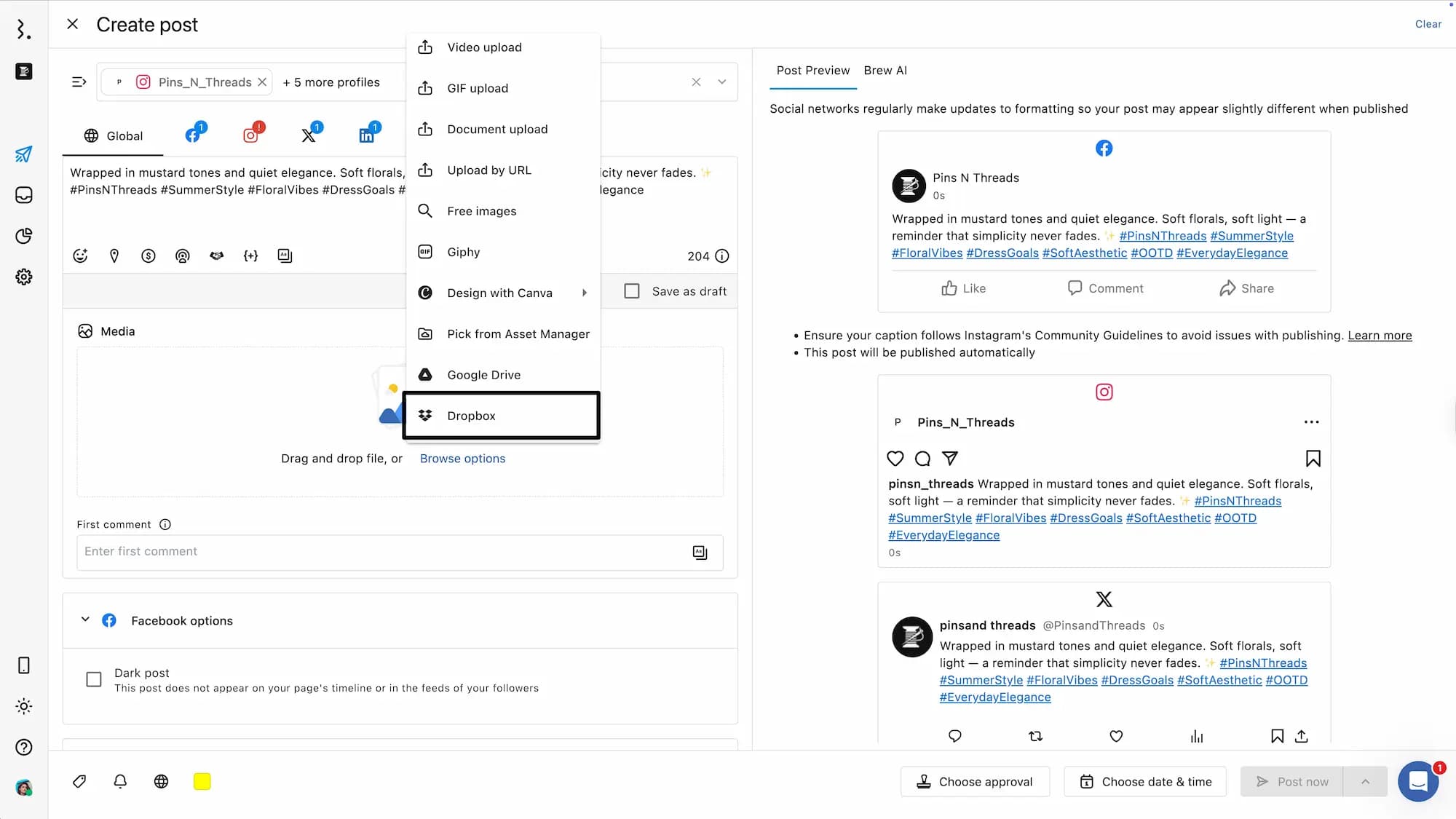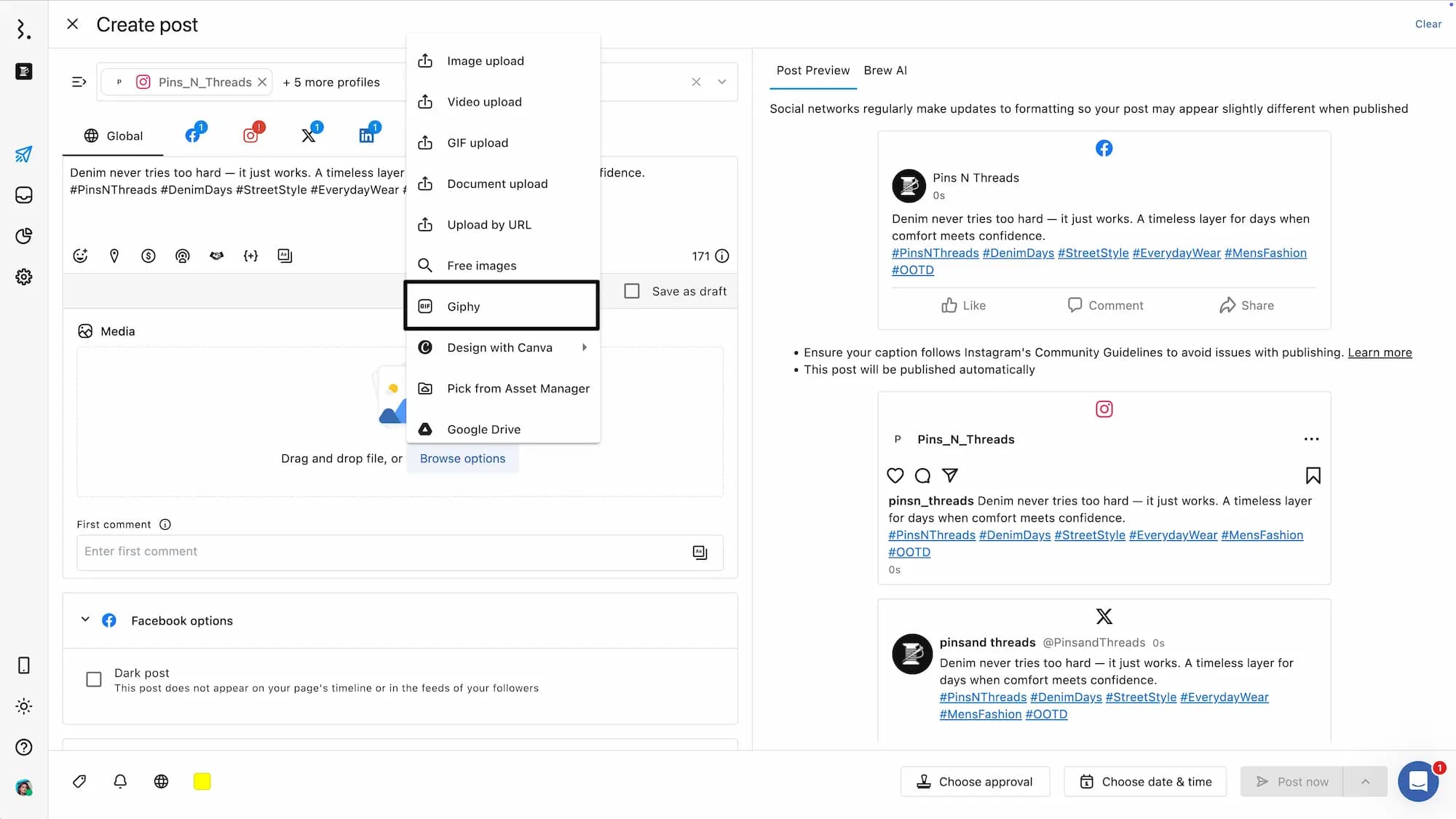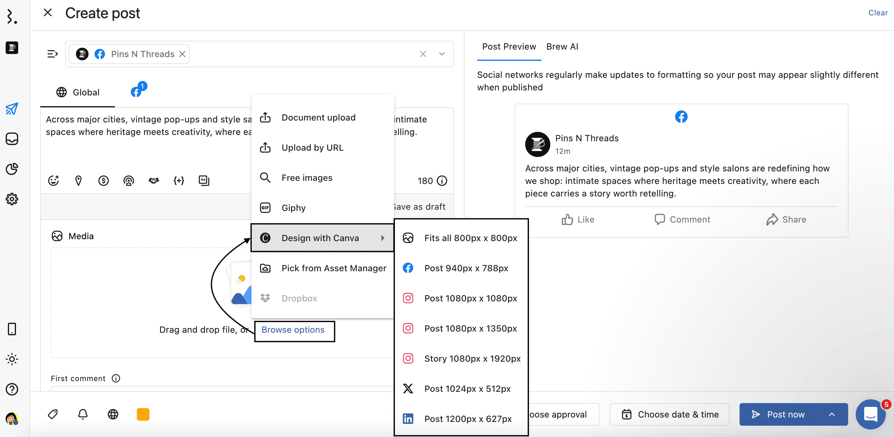 Make your posts stand out by adding media to them. Each social network has unique requirements for media files. So, refer to our article on Media Specifications For Different Social Networks.