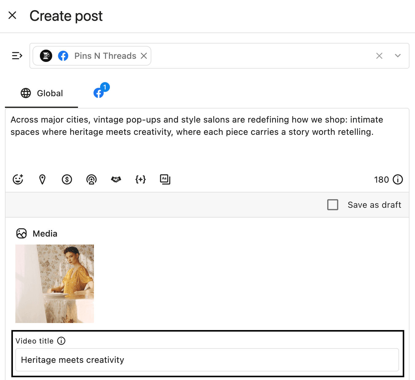 Once a video is uploaded, you can add a Video title (for Facebook, YouTube, and LinkedIn)