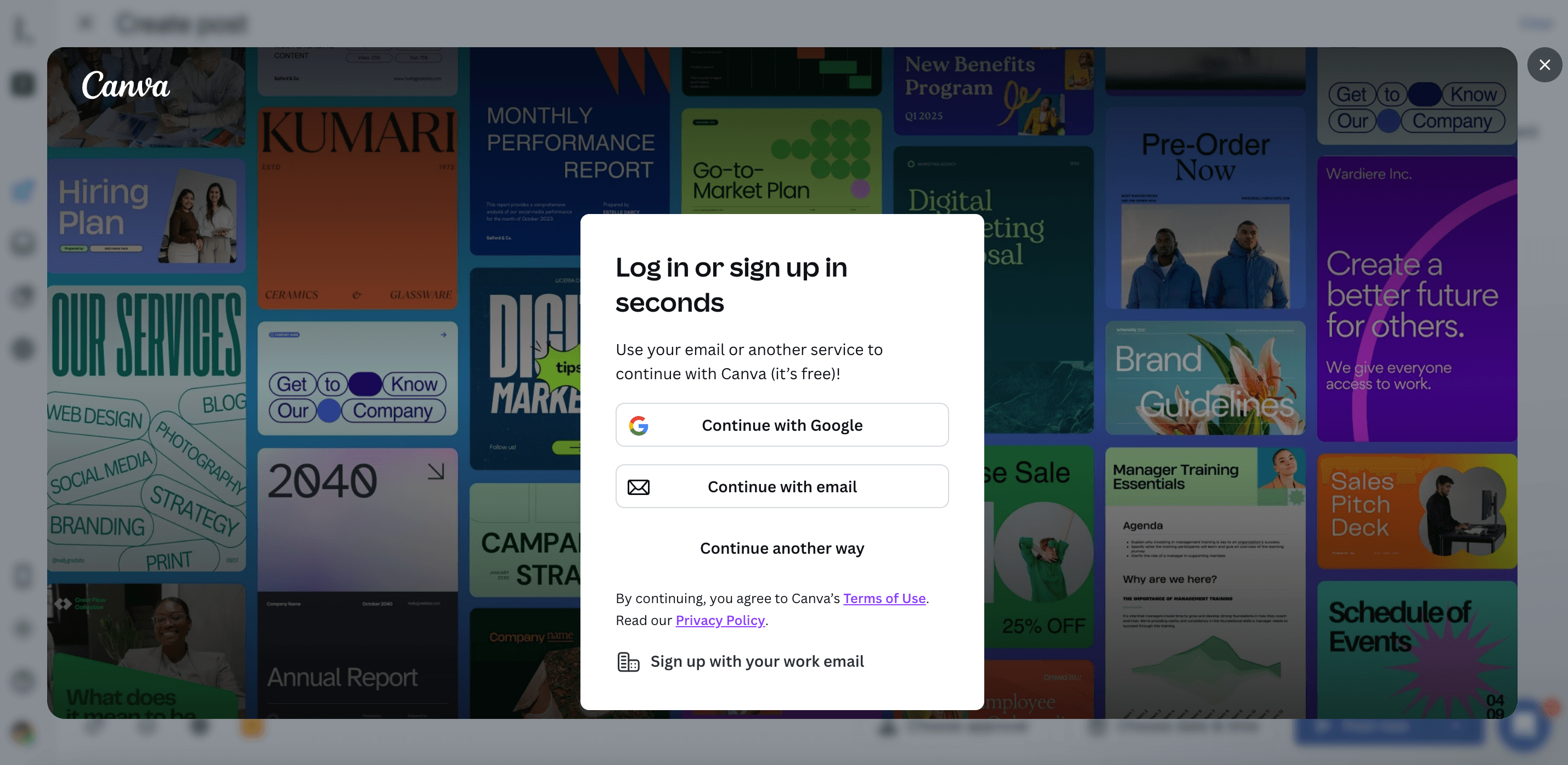 The first time you use Canva in Statusbrew, you’ll need to sign up or log in to an existing Canva account.