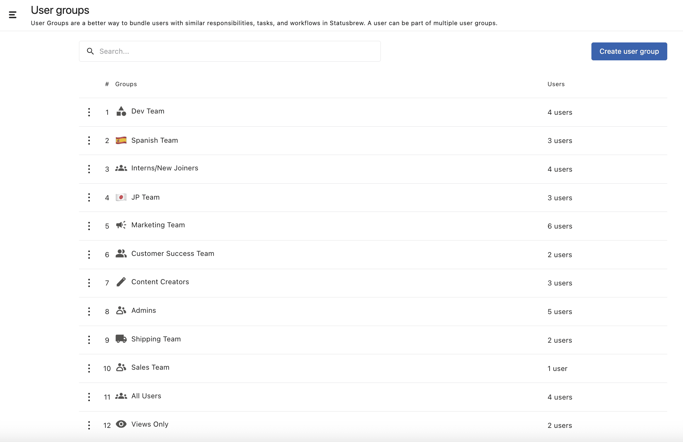 User Groups are a better way to bundle users with similar responsibilities, tasks, and workflows in Statusbrew. A user can be part of multiple user groups.