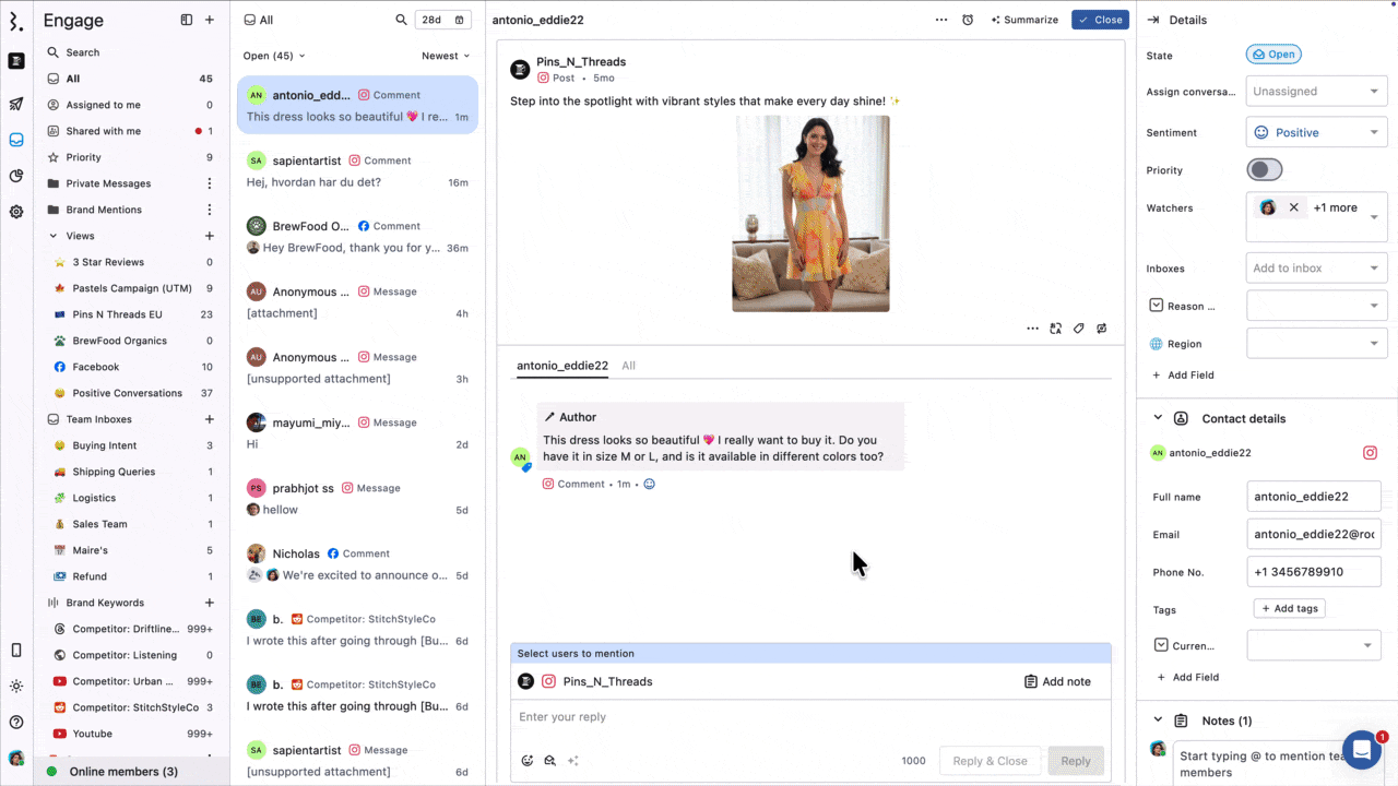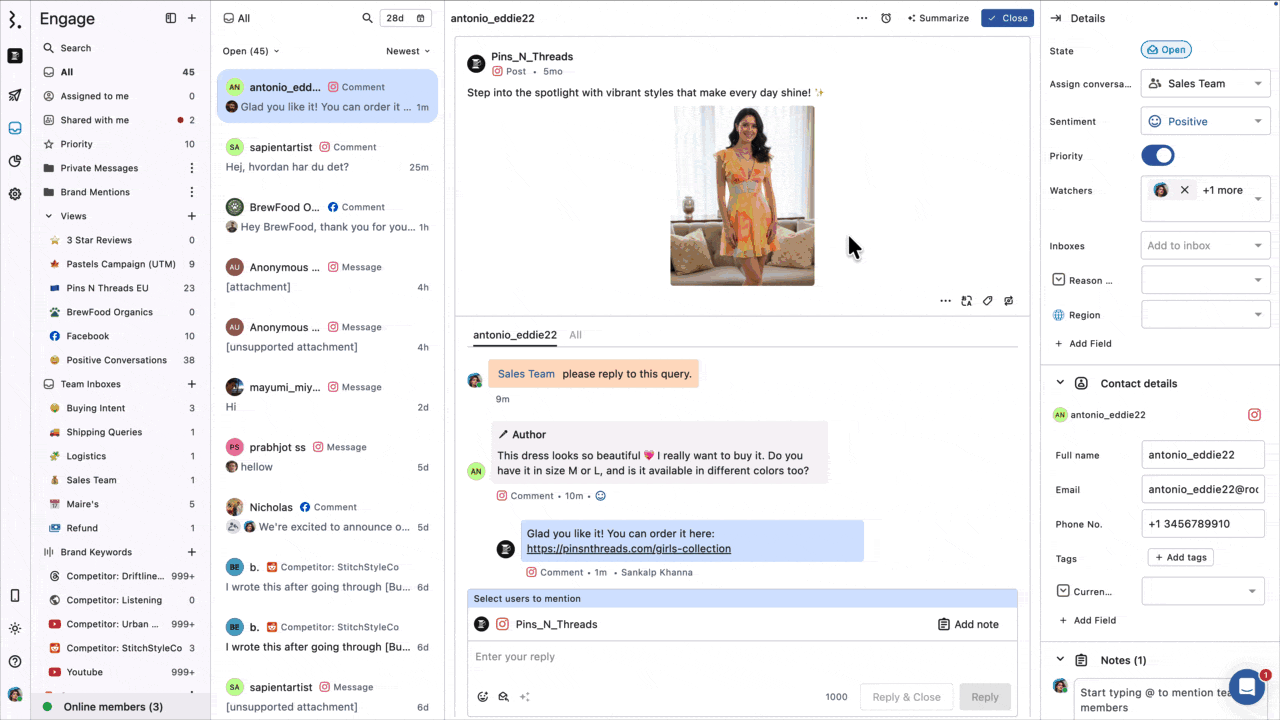 Statusbrew Engage helps you and your team monitor and manage all social conversations from different social networks in a single place. Collaboration is at the core of Statusbrew Engage, making it perfect for managing social conversations as a team.