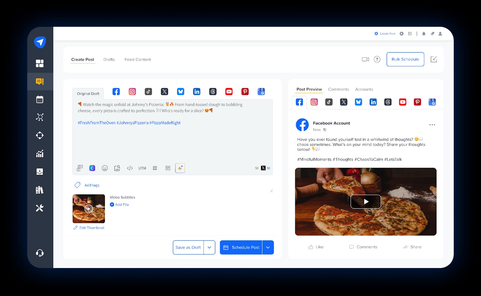 Features like post repetition and first-comment scheduling enhance audience engagement and extend content visibility.