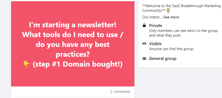 In one of these groups, the user was looking for an email automation tool. So you could offer your service/product if it was relevant to the context.
