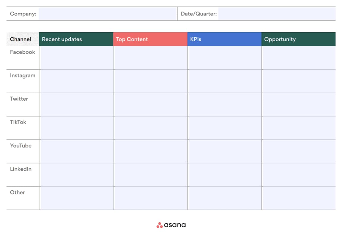 Free templates from Semrush, Notion, and Asana can help smaller teams or new social media managers get started with structured audits.