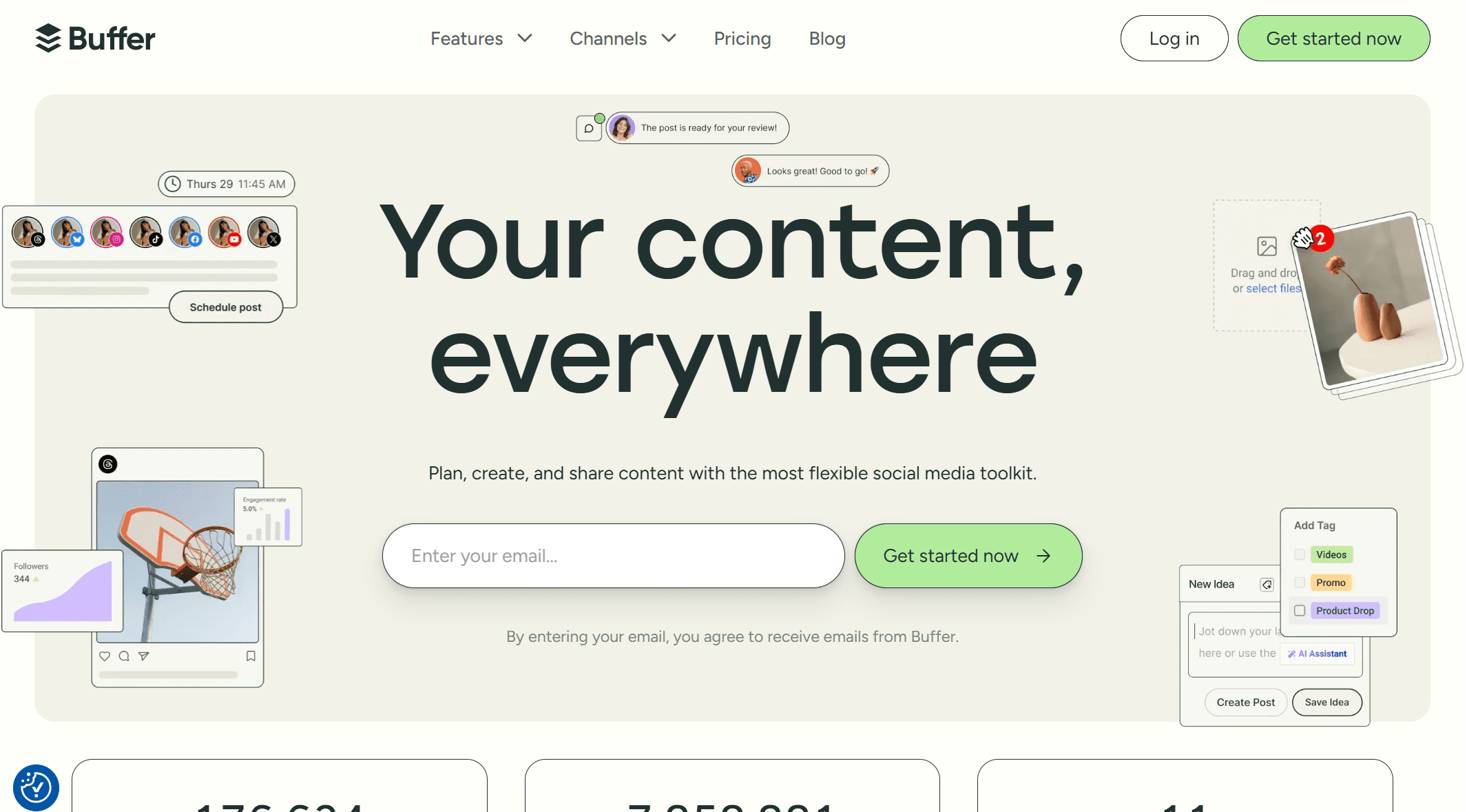 • Offers comprehensive analytics and reporting tools that provide data on engagement, follower growth, and performance metrics for each social network