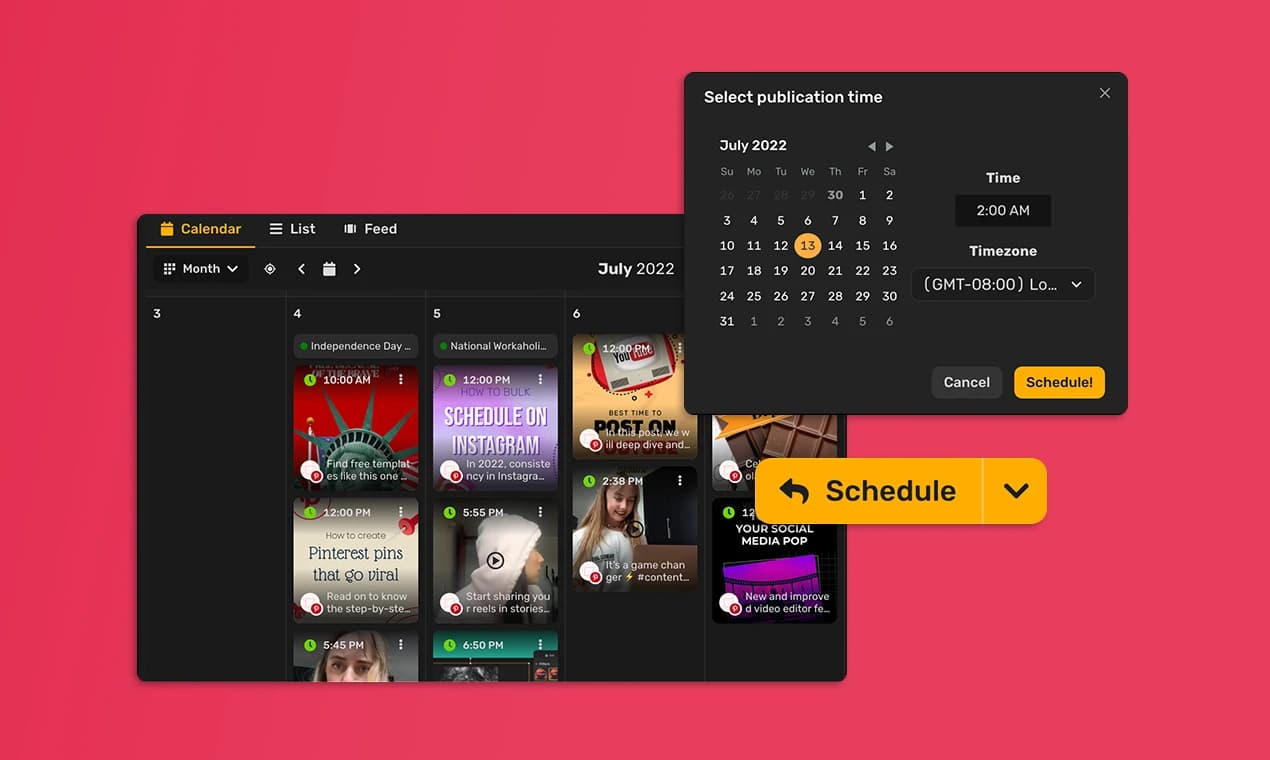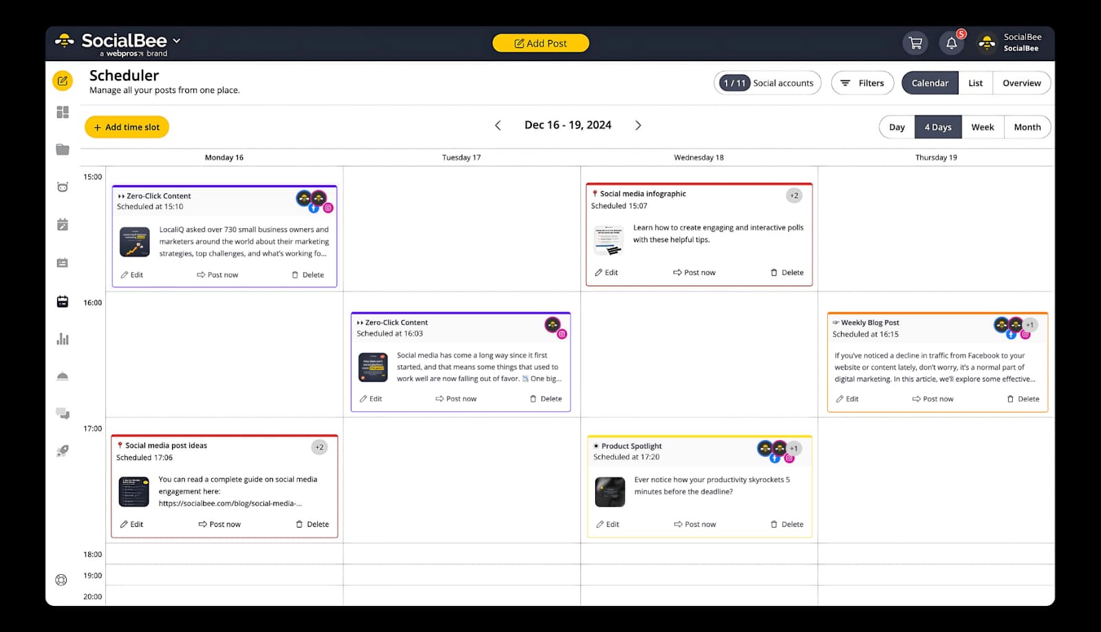 The visual calendar gives you a clear view of what’s scheduled across all platforms, so you can spot any gaps or overlaps.