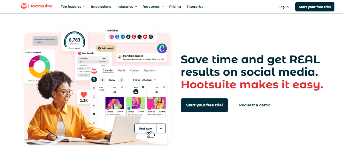 Hootsuite is a super popular tool used by businesses of all sizes. It allows you to manage multiple social media accounts, schedule posts, engage with your audience, and check your social media performance.